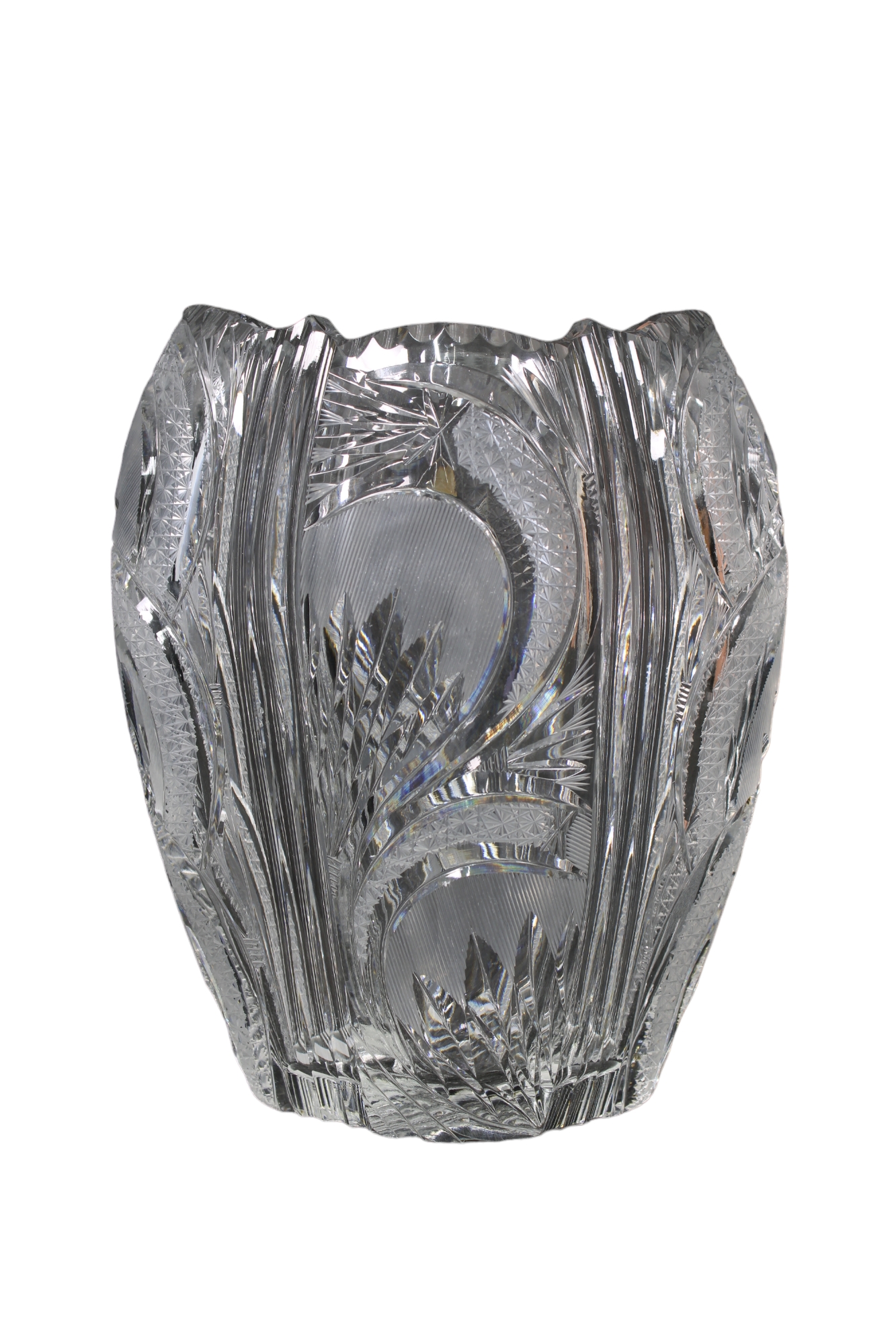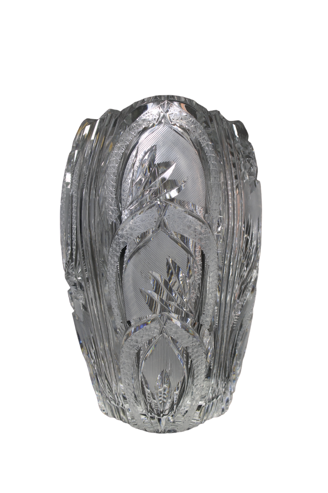 VASO in cristallo di Boemia lavorato periodo stimato anni 70 H 26,5 X 22 X 16