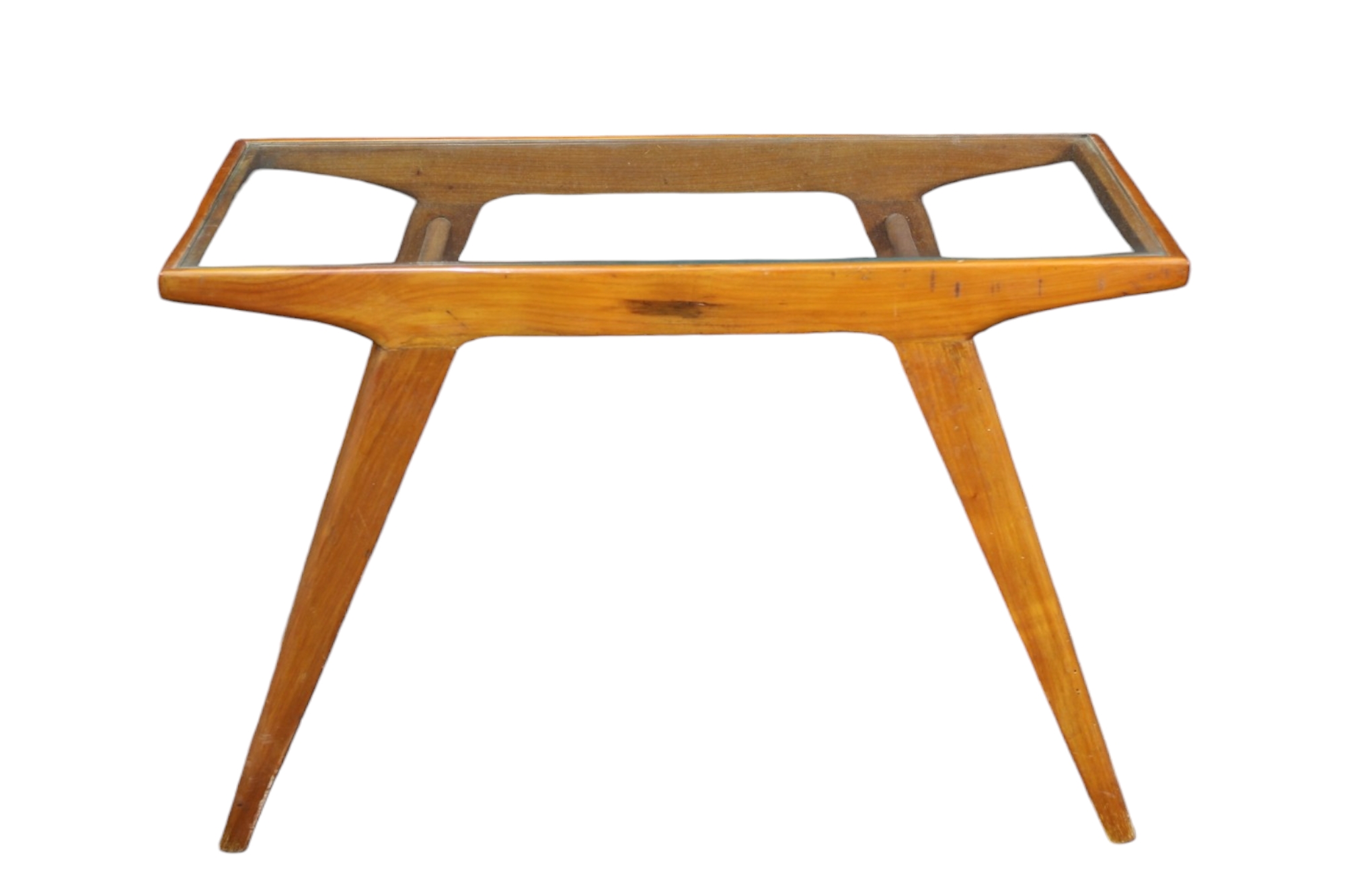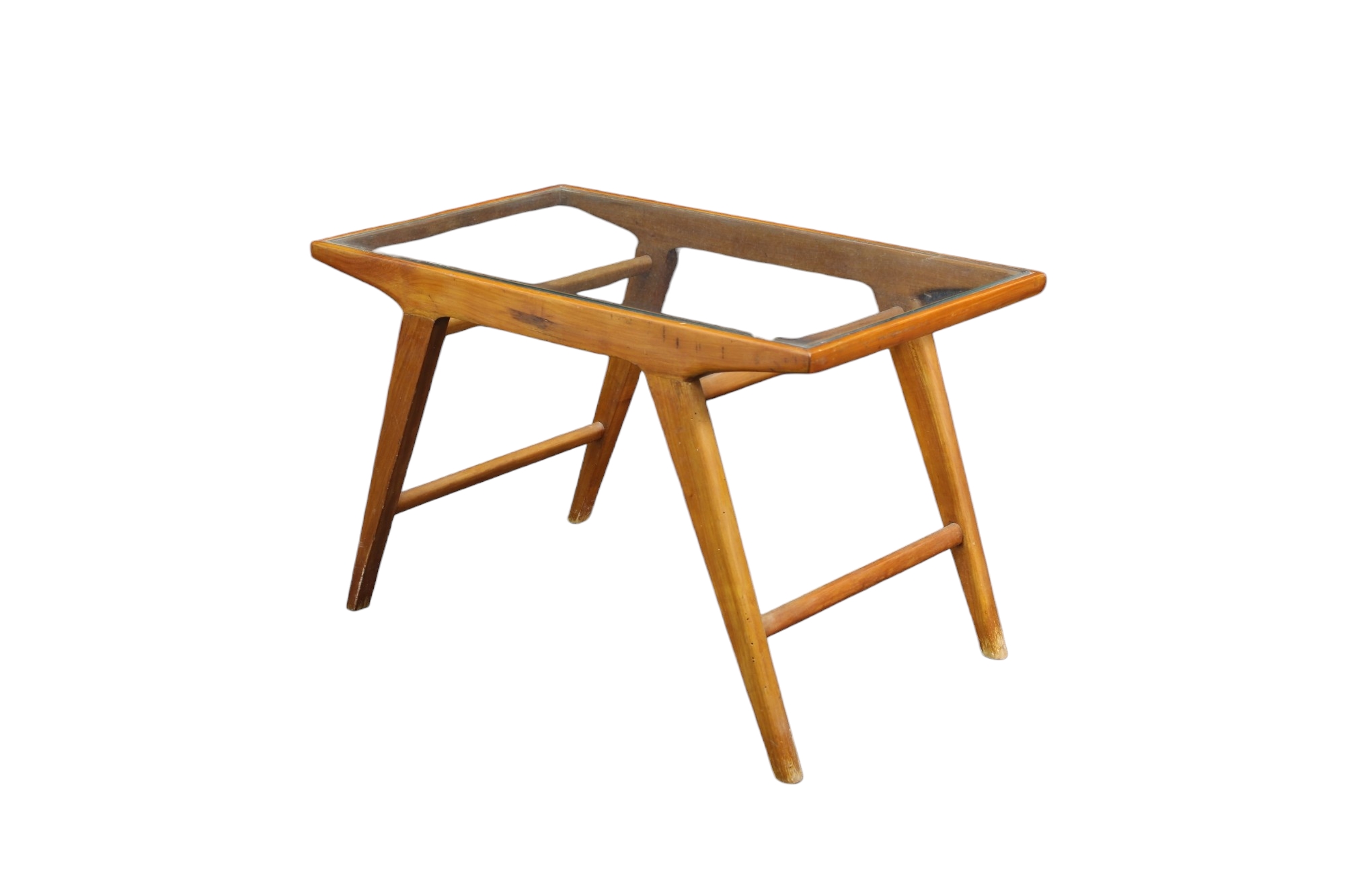TAVOLINO DA CAFFÈ in legno e ripiani in vetro produzione italiana periodo stimato anni 60 h cm 48 x 43 x 76