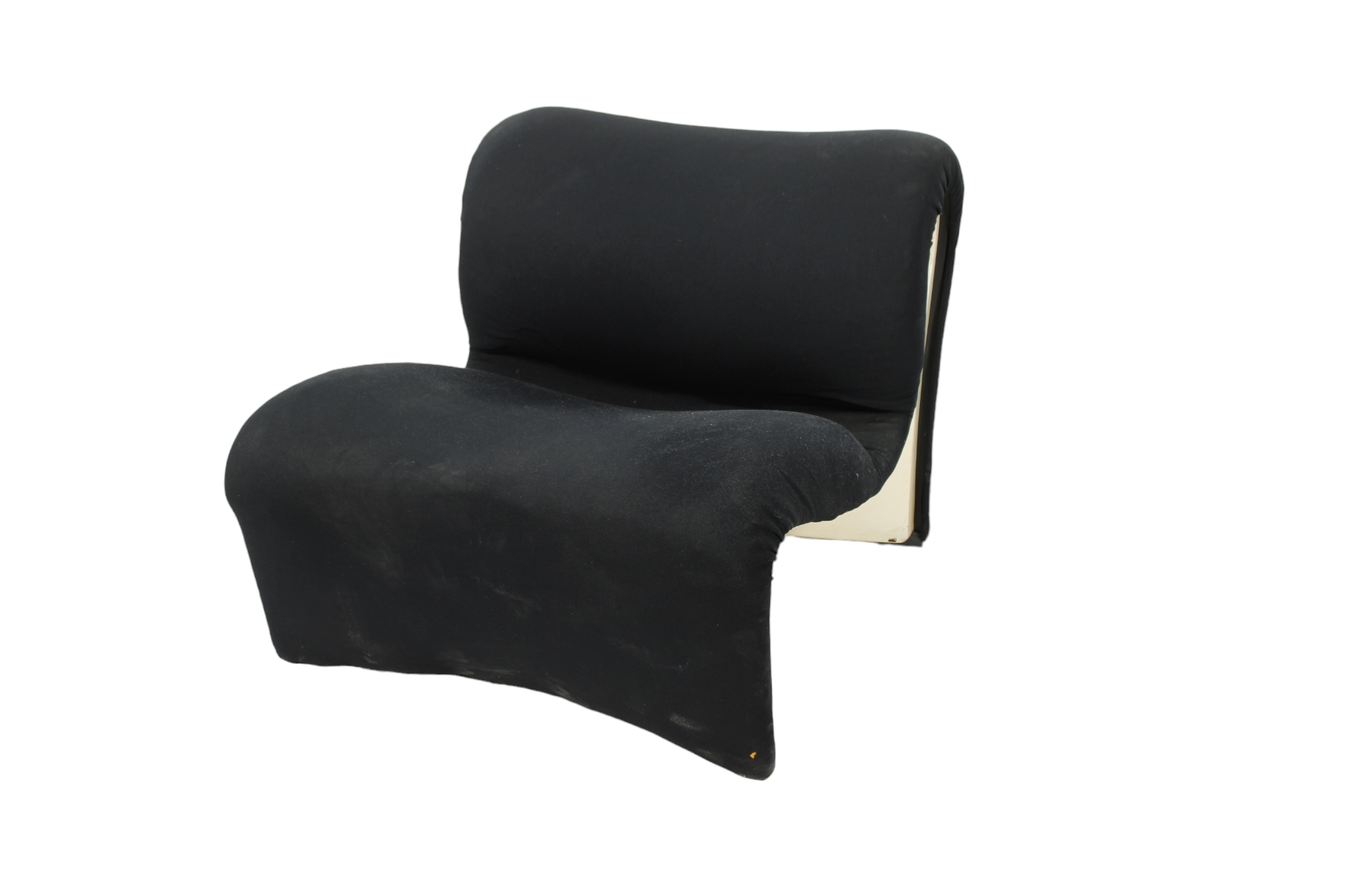 POLTRONA SPACE AGE in tessuto blu e struttura bianca in vetro resina curvo laccato periodo anni 60 h cm 68 x 74 x 83