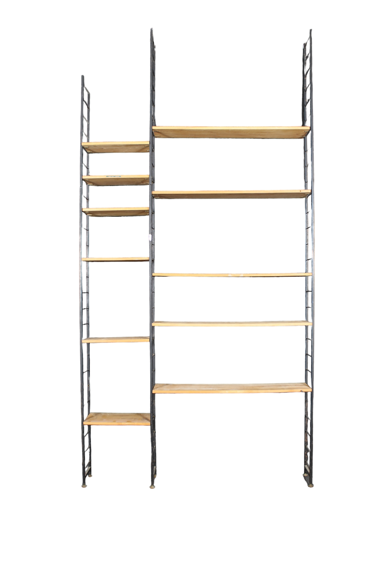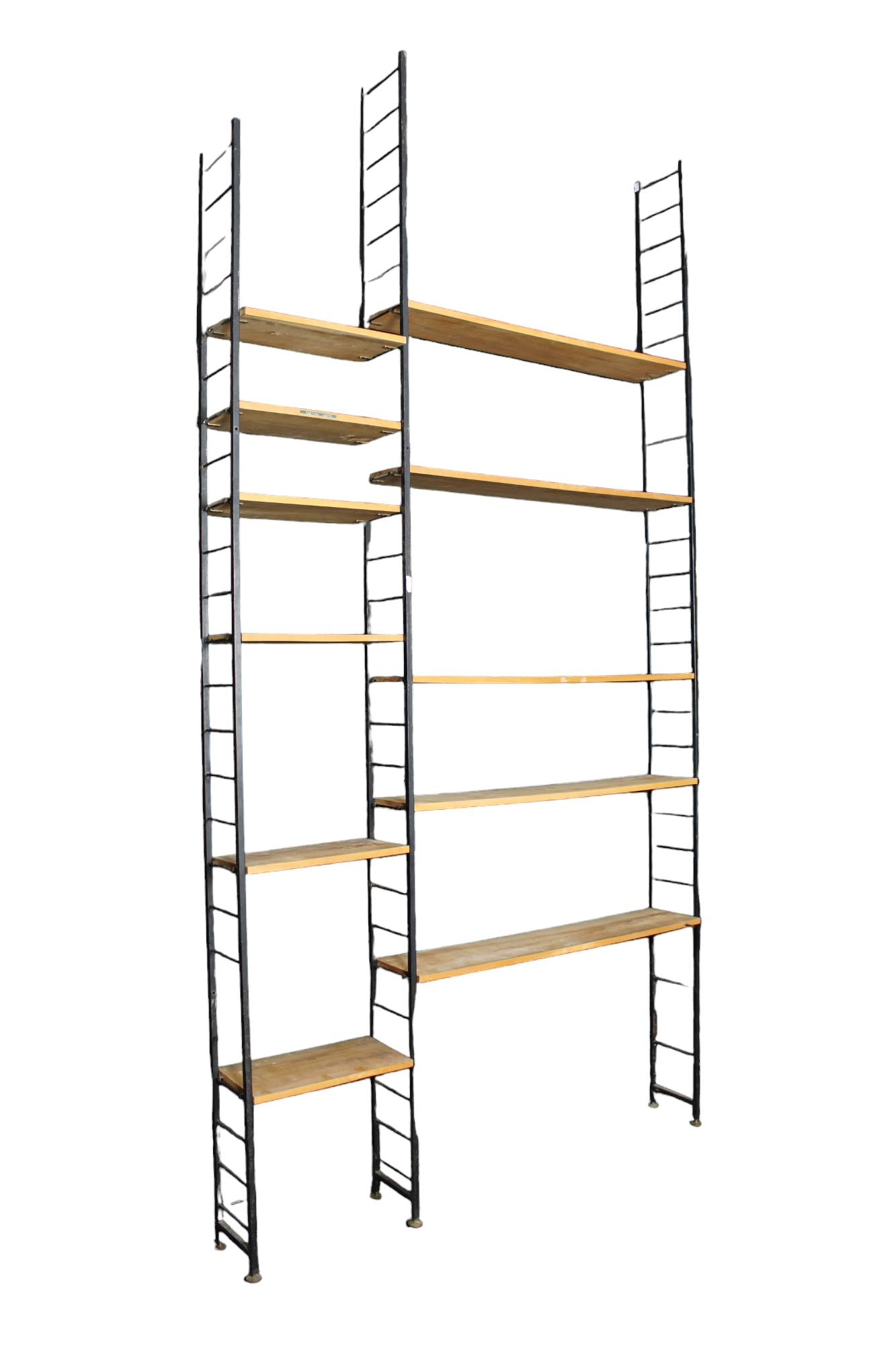 LIBRERIA CIELOTERRA SVEDESE con struttura in ferro nero e ripiani in legno periodo stimato anni 60 h cm 283 x 142 x 21