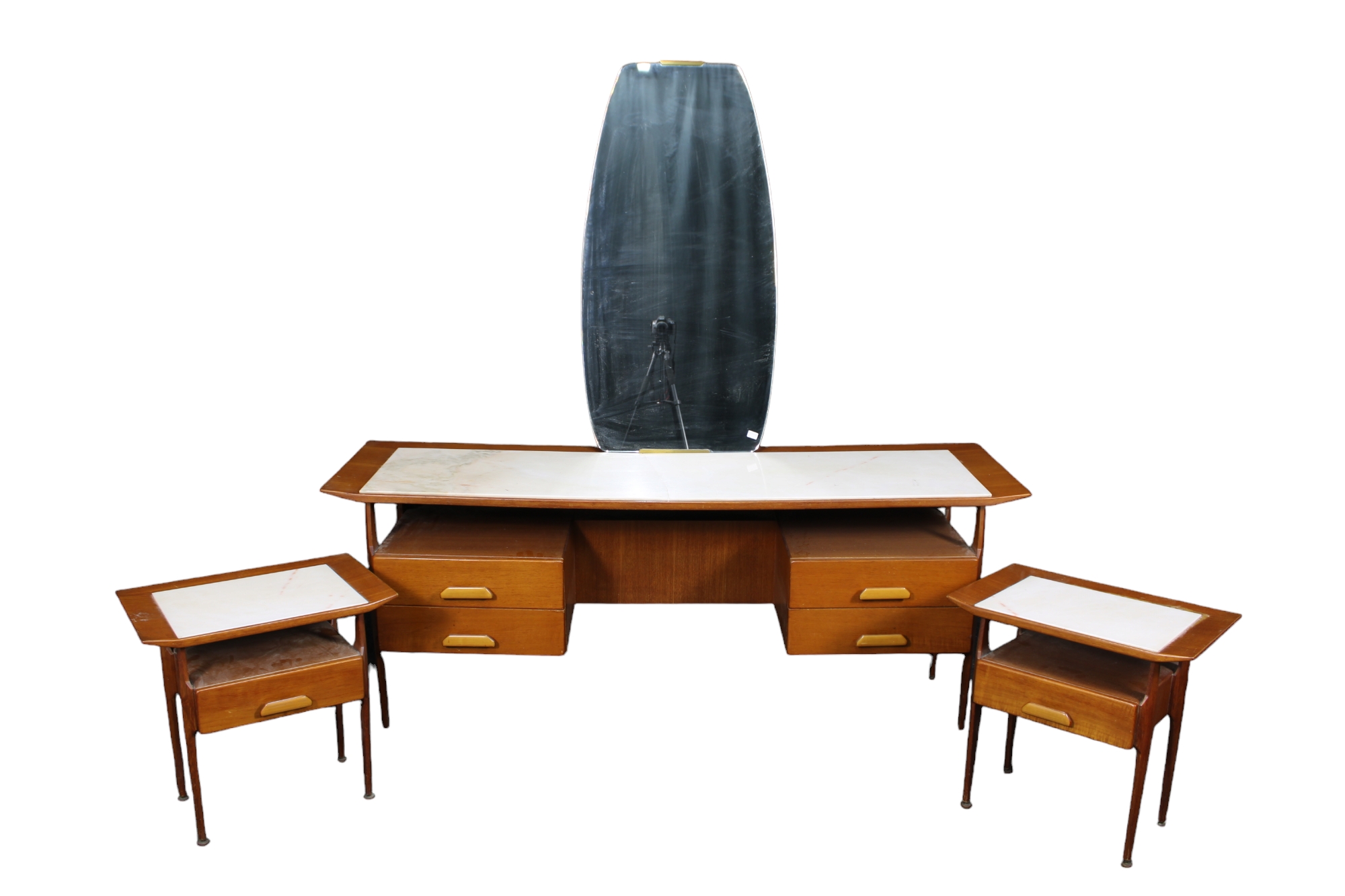 TRITTICO Più SPECCHIERA di ottima fattura e pregevole movimento produzione italiana periodo stimato anni 60 h cm 172 x 171 x 50 / h cm 50 x 53 x 35