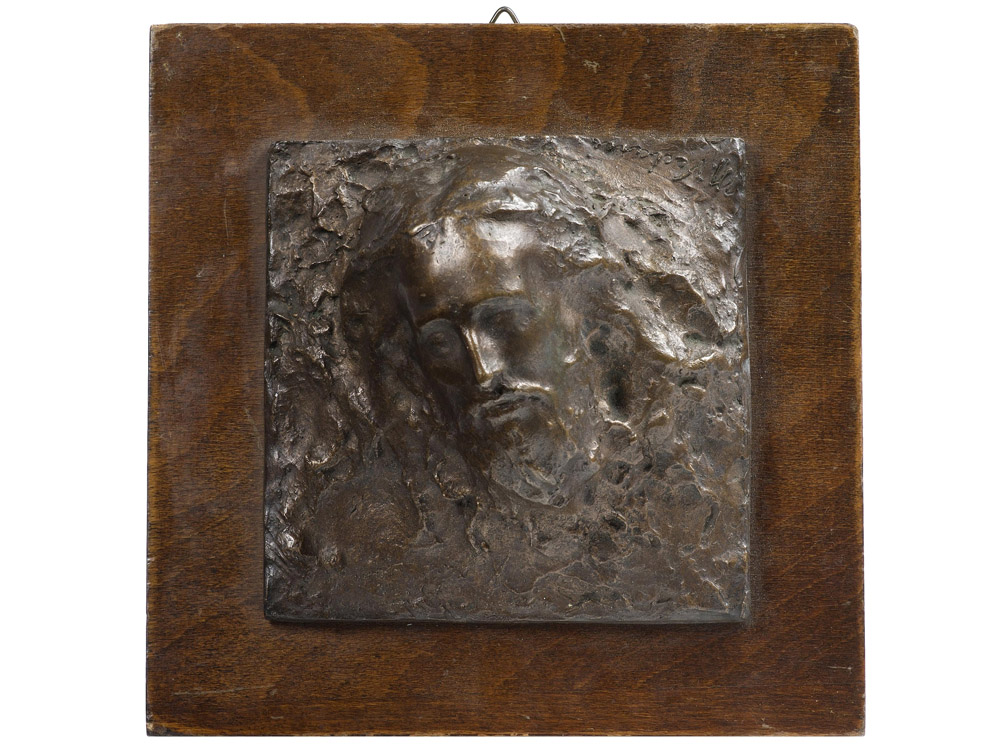 Michele Vedani (Milano 1874–1969) Testa di Cristo Bronzo Firmato Misure 13.2x13.2 cm, montato su placca in legno