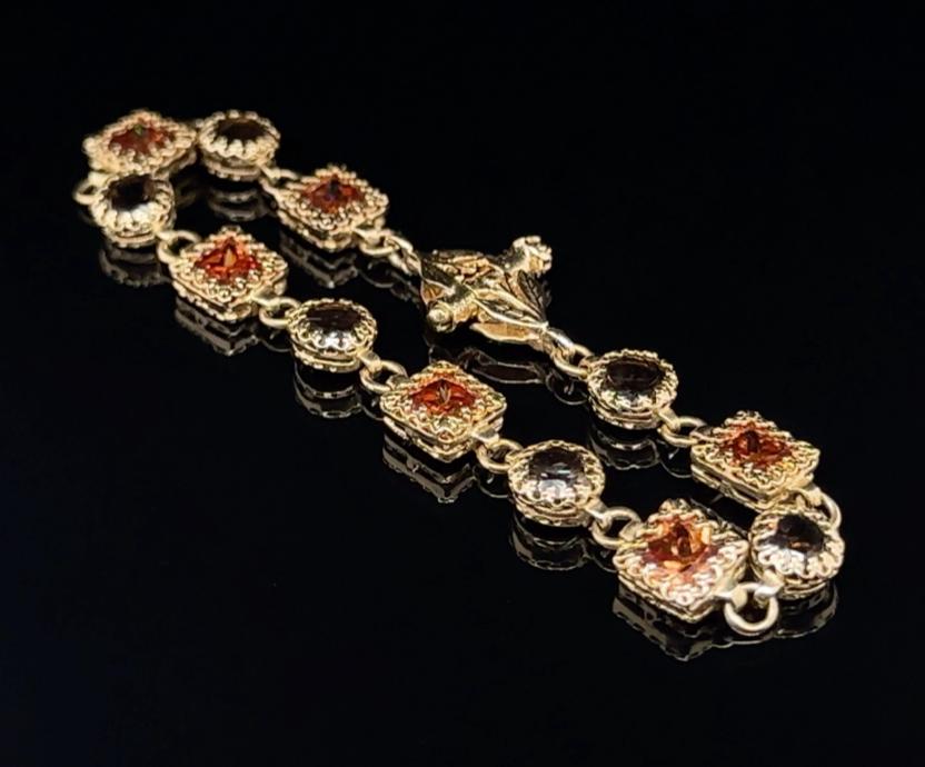 BRACCIALETTO IN ORO GIALLO 14K 11.24 GR CON QUARZO CITRINO 9.00 CARATI COLORE E QUARZO SMOKY 6.00 CARATI 17CM - CERTIFICATO GEMMOLOGICO MAROZ DIAMONDS LTD MEMBRO ISRAEL DIAMOND EXCHANGE - 24K40101