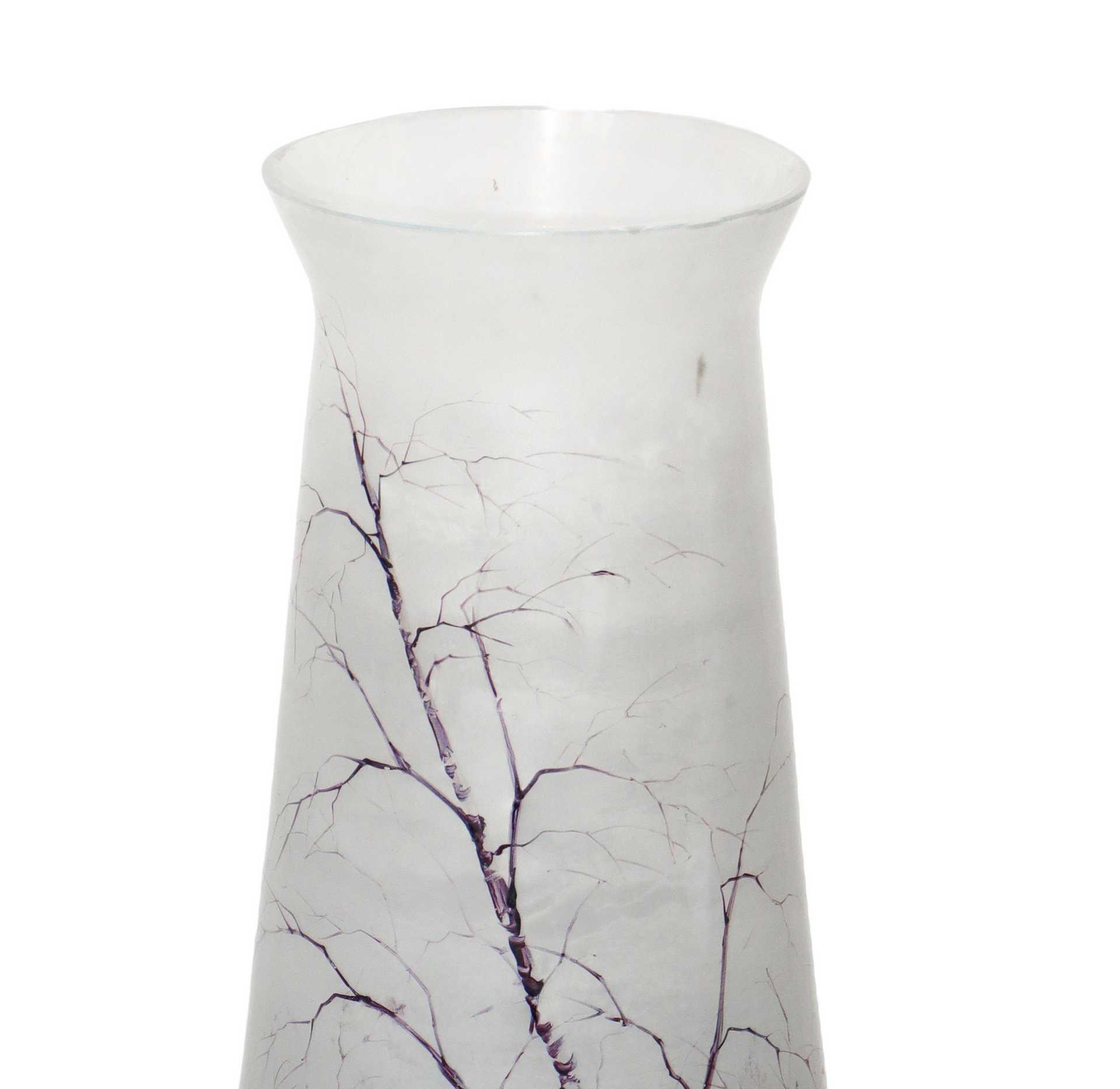 Vaso in vetro satinato, dipinto a smalto a mano con paesaggio, primi 20th secolo H cm 28 x 13 Dipinto nei toni del viola.Dipinto nei toni del viola.
