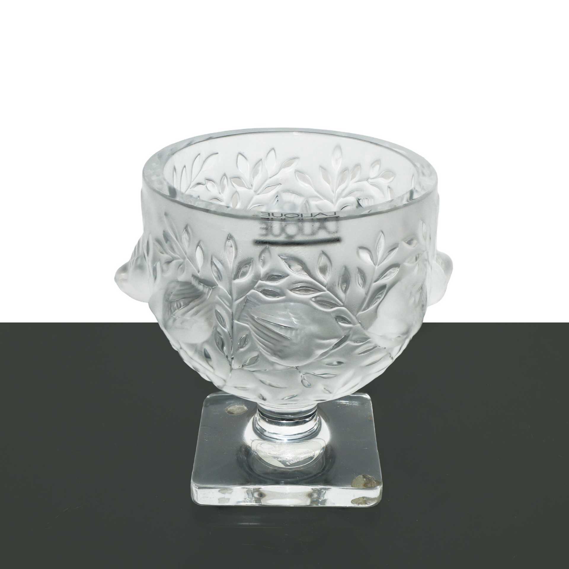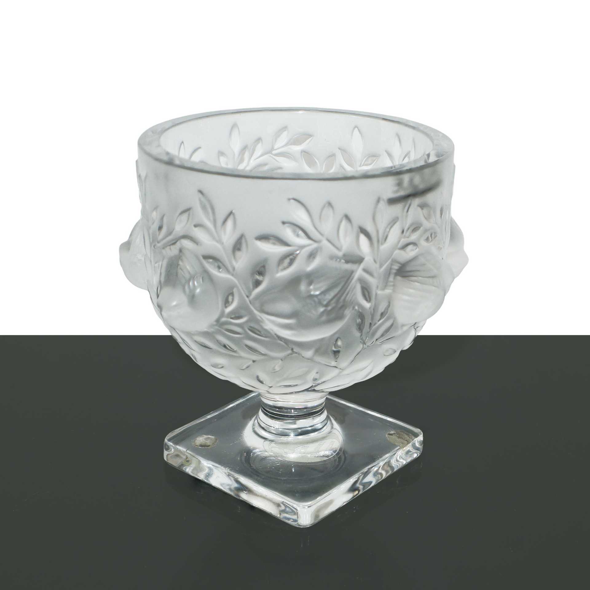 Lalique France (1888) - Coppa in cristallo satinato Elisabeth Birds Lalique cm 14 diametro 12 base 8,5X8,5