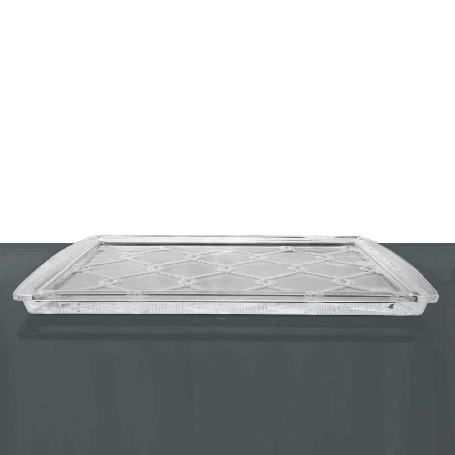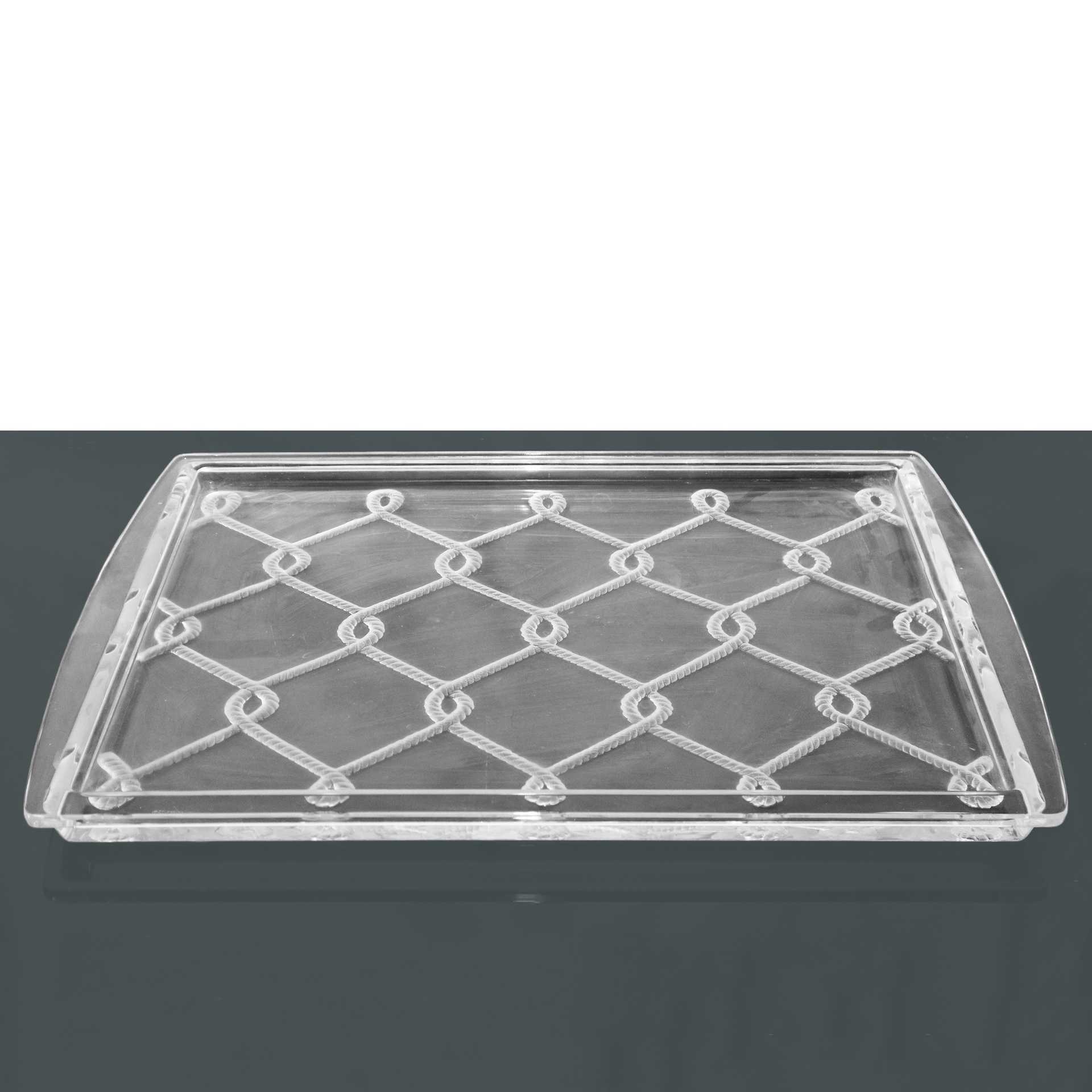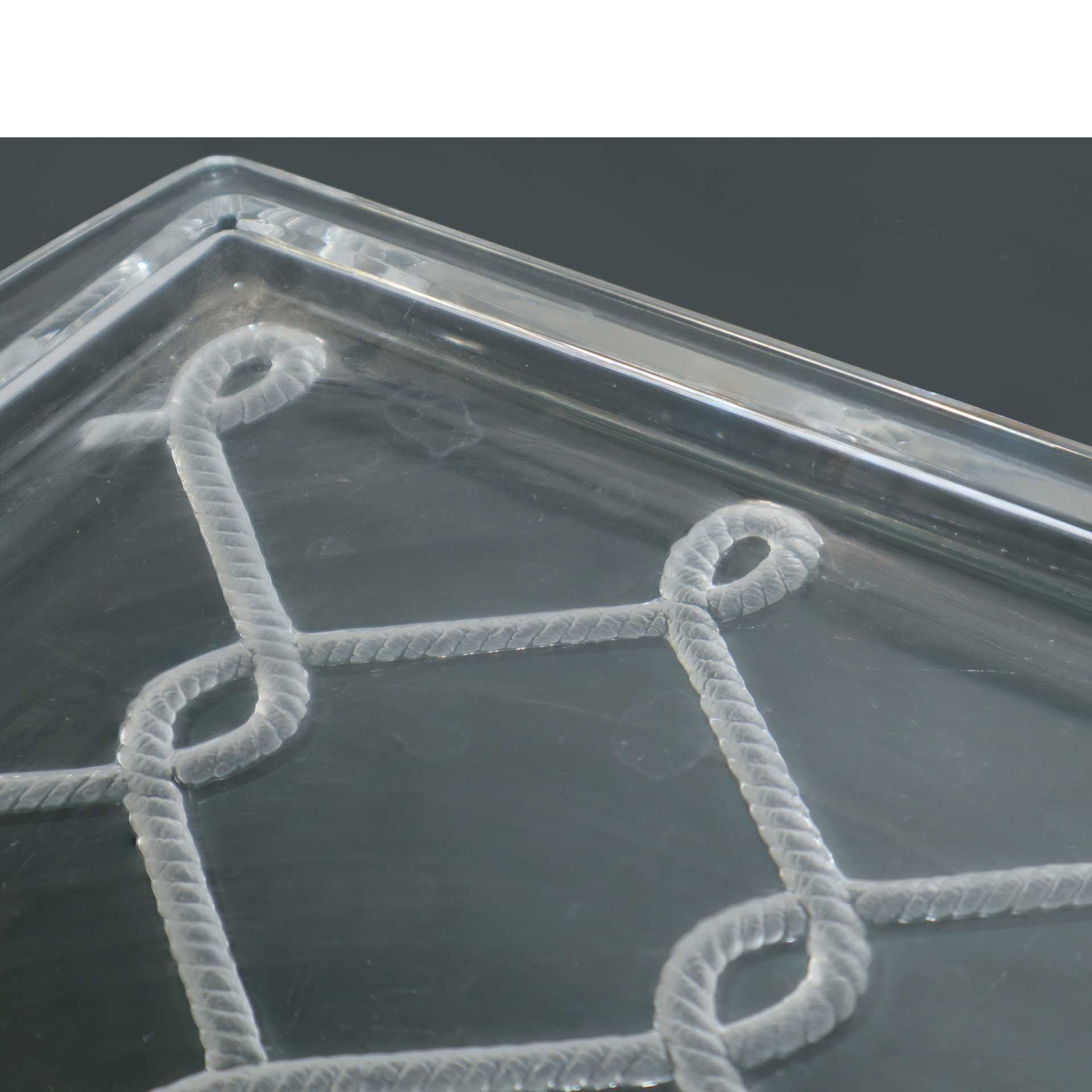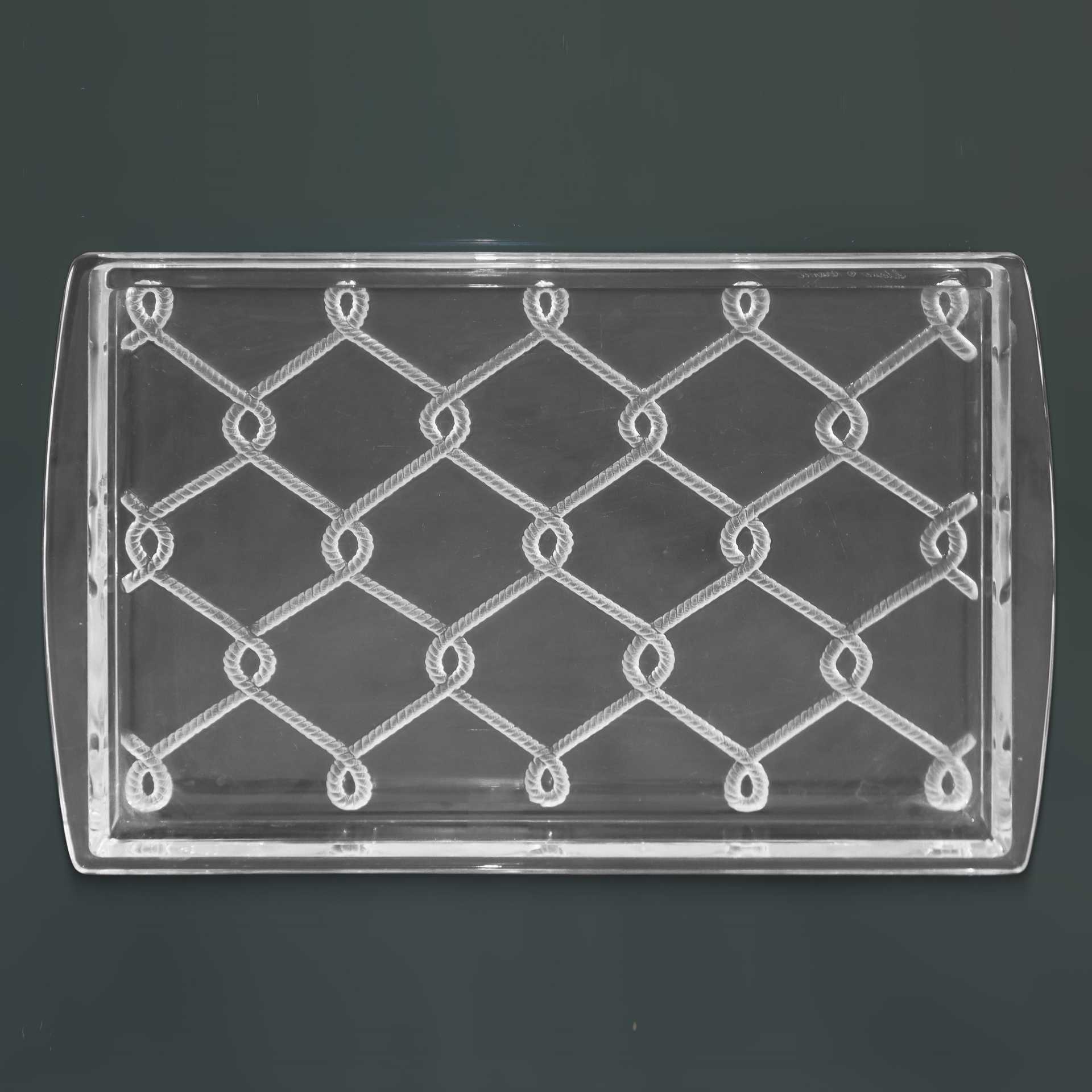 Lalique France (1888) - Vassoio in cristallo modello "Saint Malo", 20th secolo cm 30 x 45 Design a corde, firma sul fondoDesign a corde, firma sul fondo
