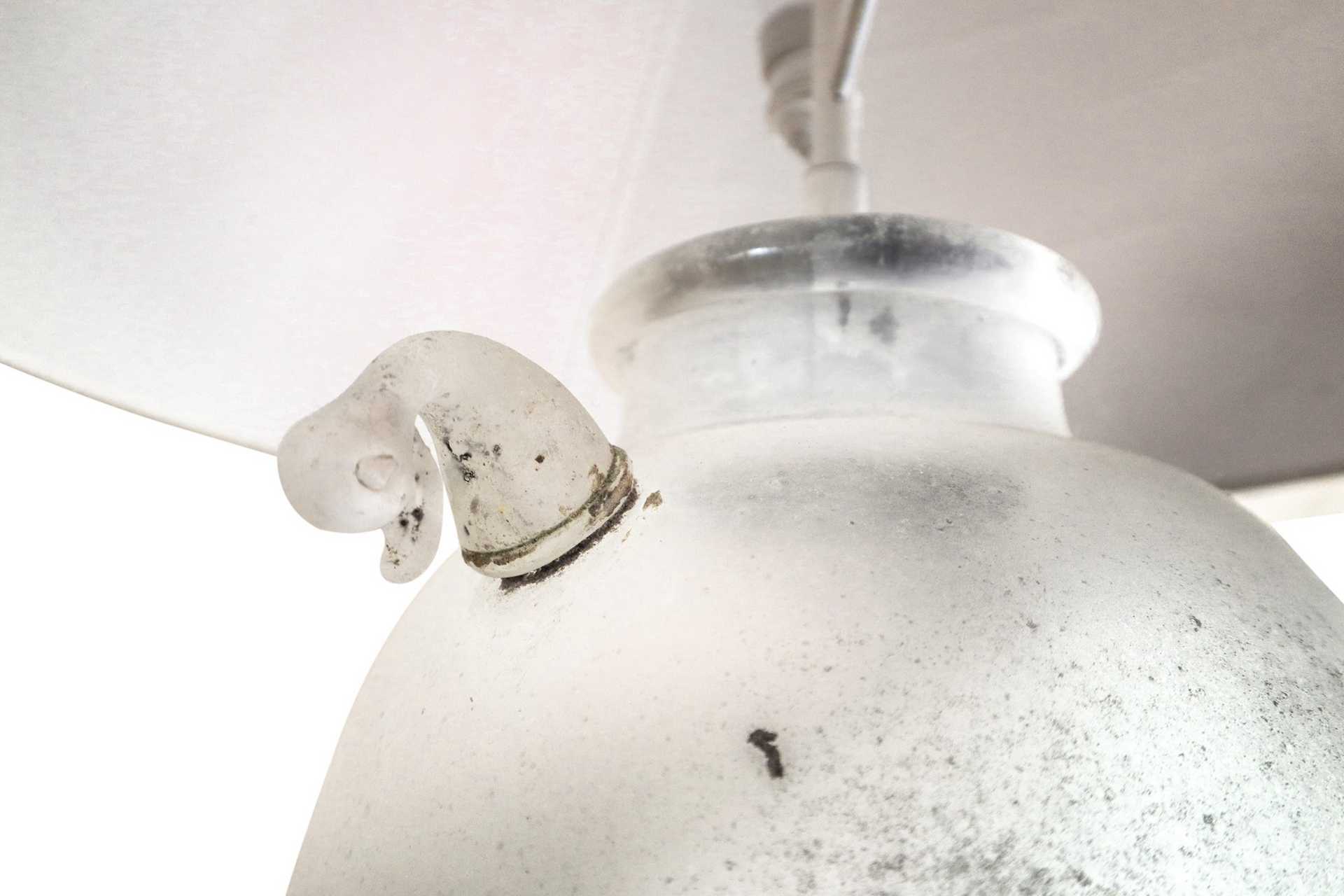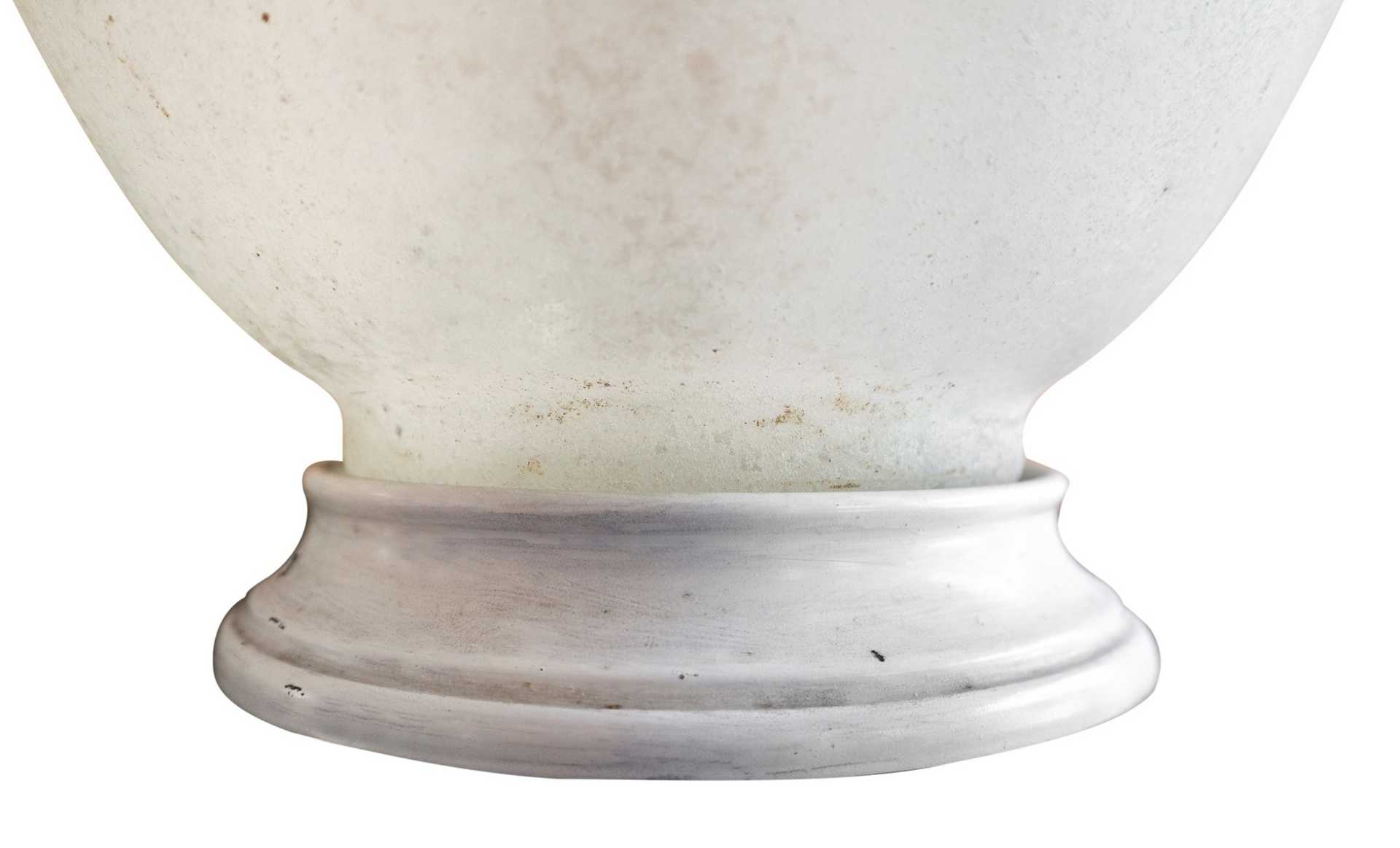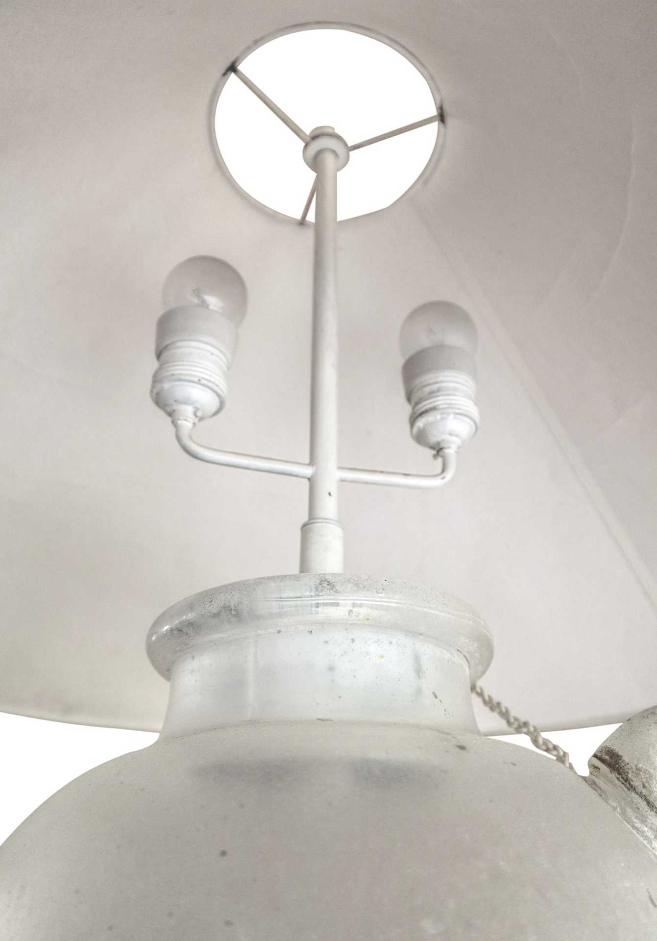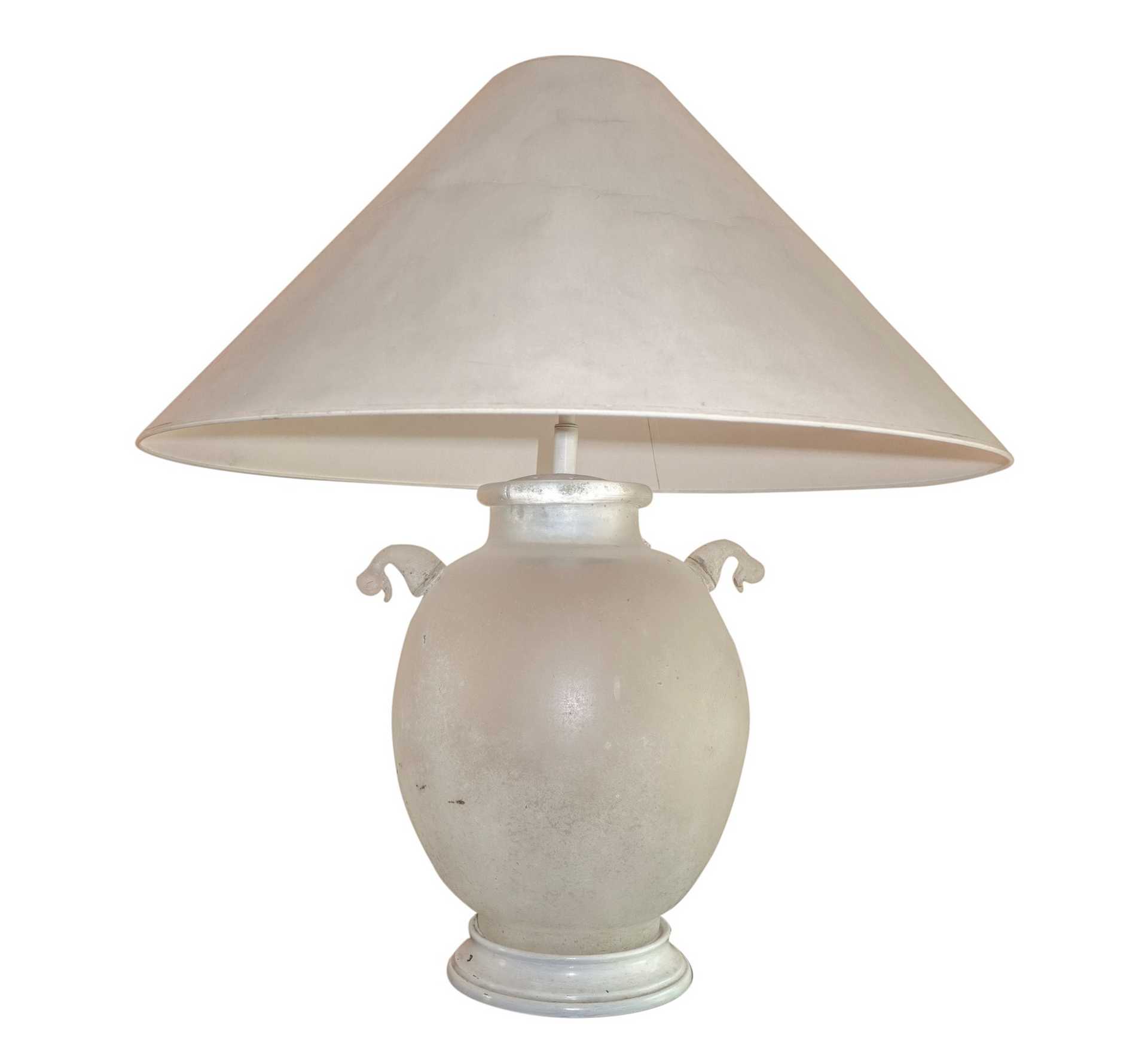 Lume da tavolo in vetro satinato h cm 75 Con paralume tronco-conico, base in metallo.Con paralume tronco-conico, base in metallo.