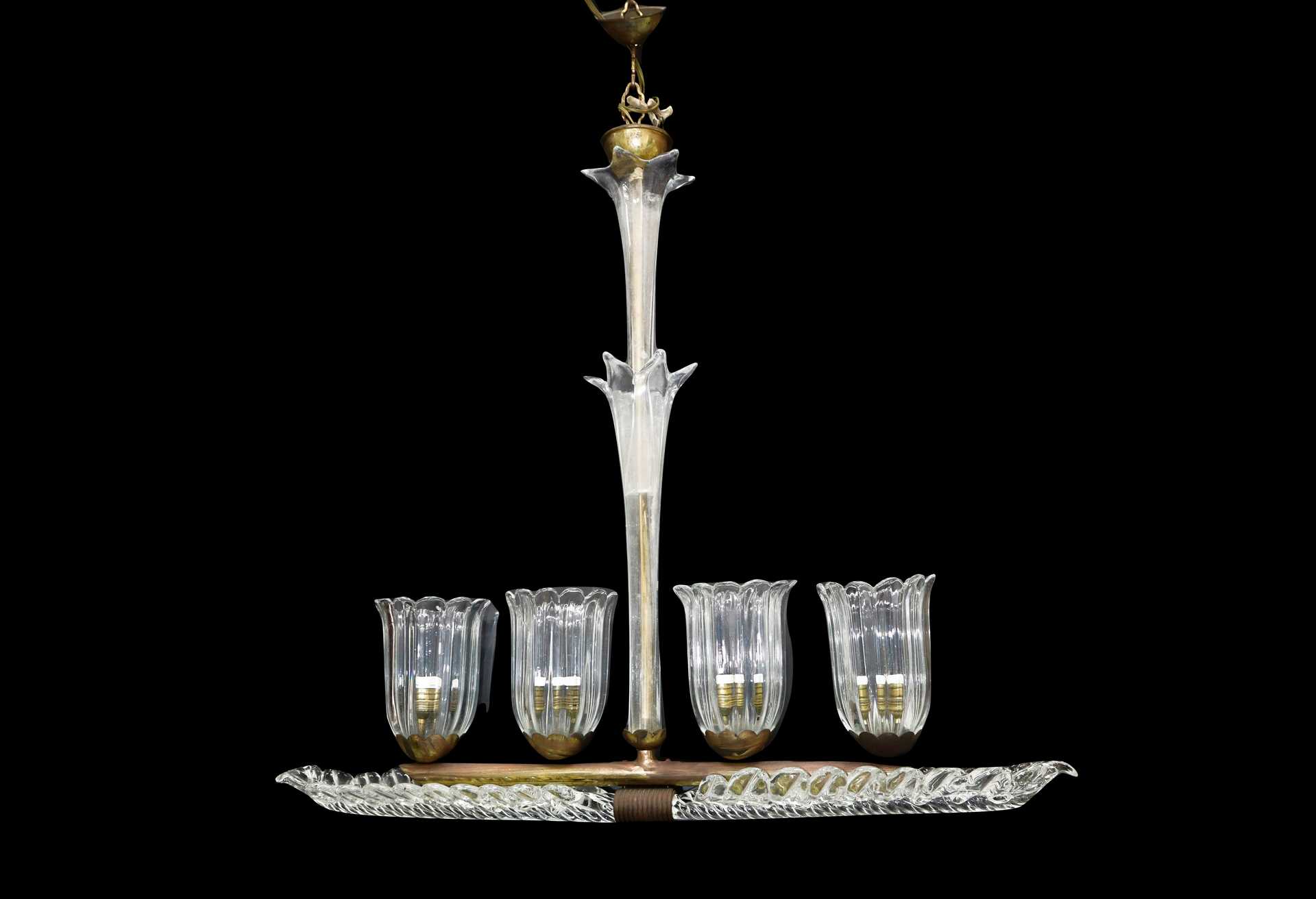 Barovier e Toso (attribuito a) - Lampadario decò a 4 luci in vetro di Murano, 1930s