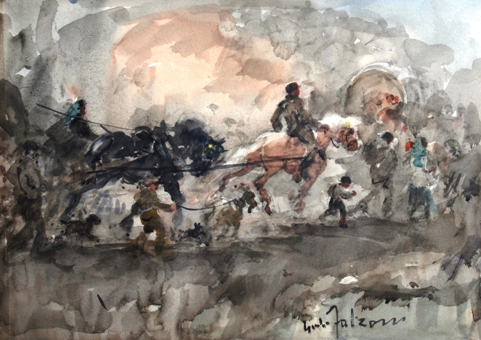 Lotto 14 | FALZONI GIULIO (Marmirolo 1900 - Milano 1978) "Nomadi" Acquerello su carta...