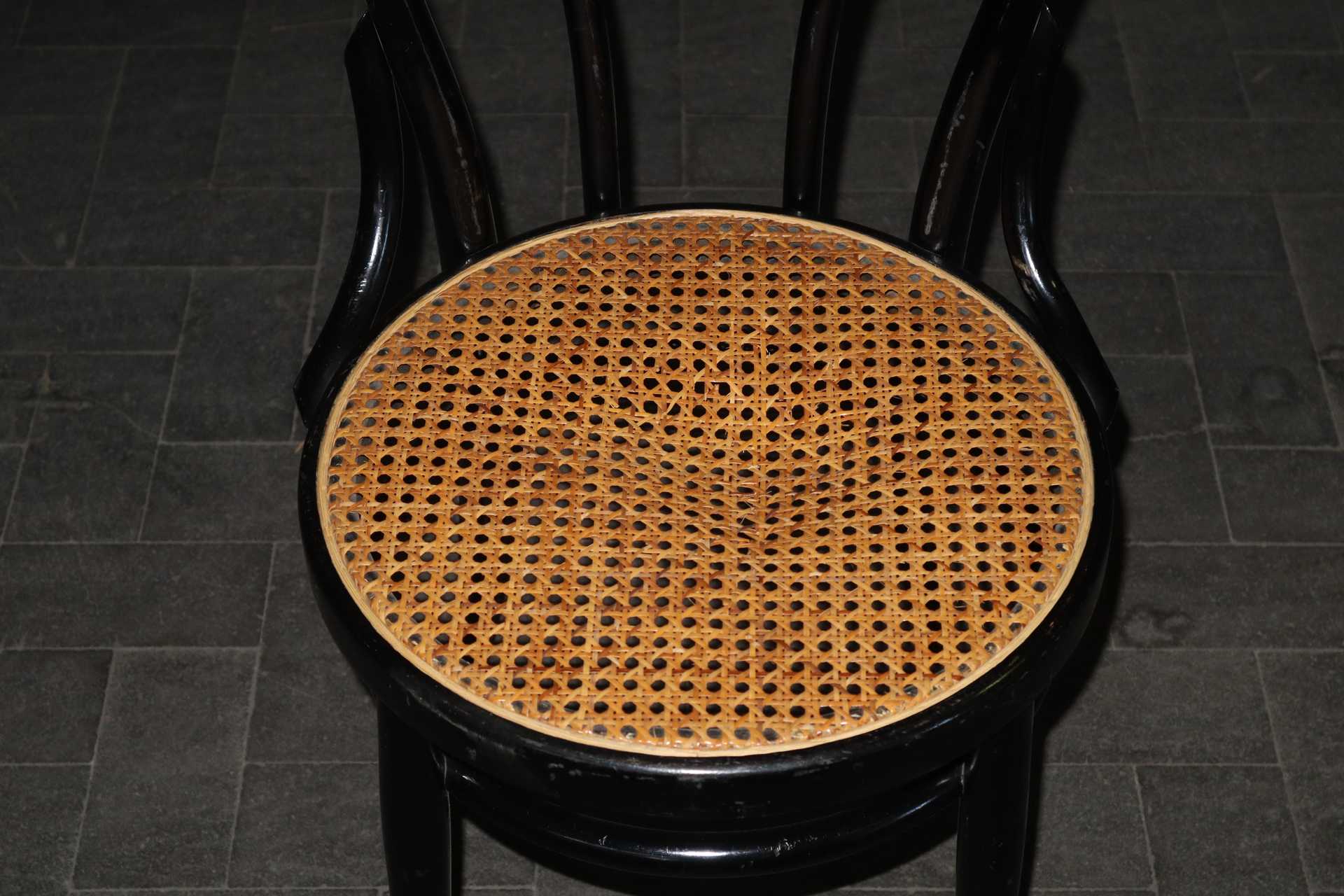 Sei sedie nello stile Thonet laccate nero H cm 87 - seduta cm 46x40 Due sedute da rifare.Due sedute da rifare.