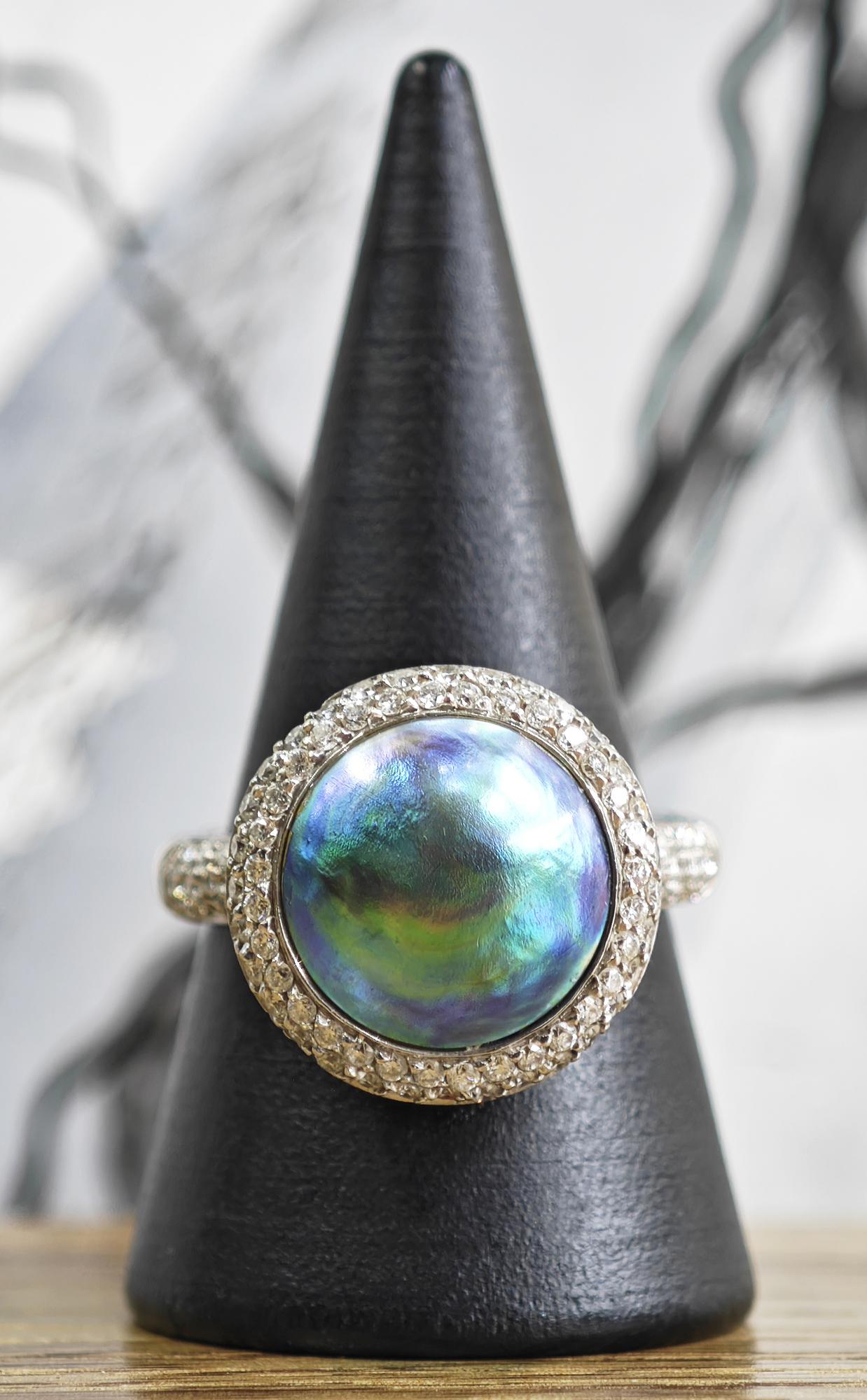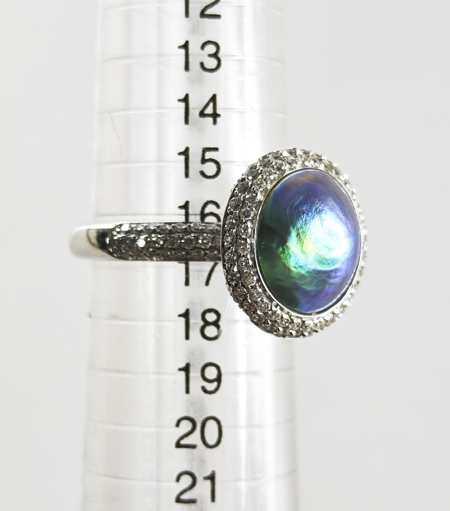 anello in oro bianco con perla e diamanti per ct. totali 0,58
