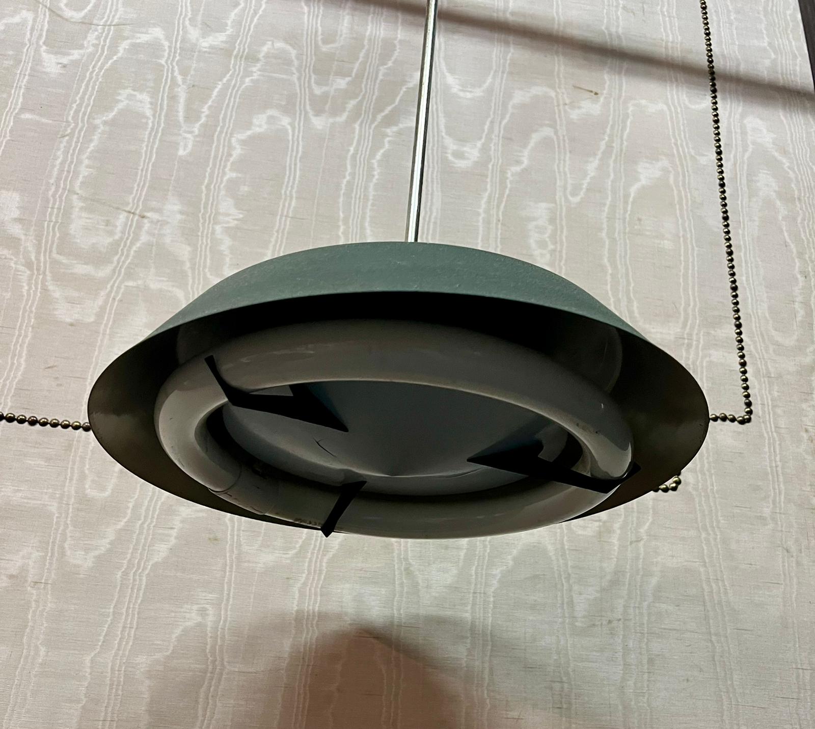 Sospensione Anni 60 in alluminio e ottone produzione italiana. H 85 D 38