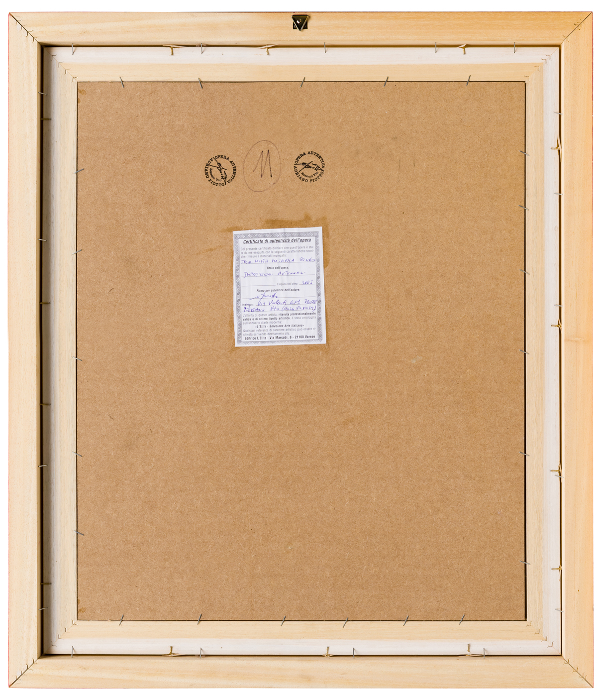 Certificati: sul verso, certificato di autenticità dell’artista con titolo e data