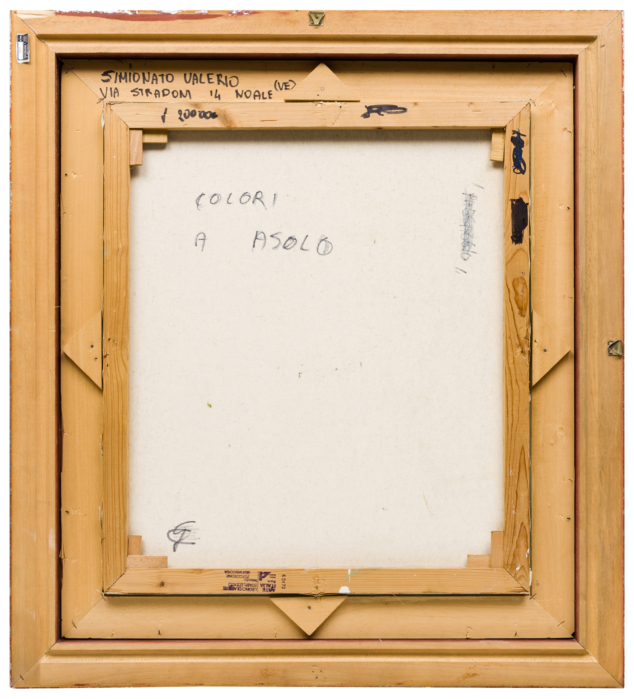 Altre iscrizioni: “Colori a Asolo” sul verso; nome e indirizzo dell’artista sul telaio