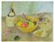 Fiaschetto e bicchiere con vino rosso / Cestino con frutta e verdura / Ravanelli, visciole, pane casareccio / Rosa appassita, foglia di Rosa, 1987