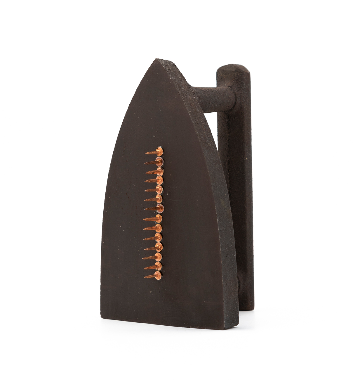 Opera multipla realizzata con ferro da stiro in ghisa e chiodi