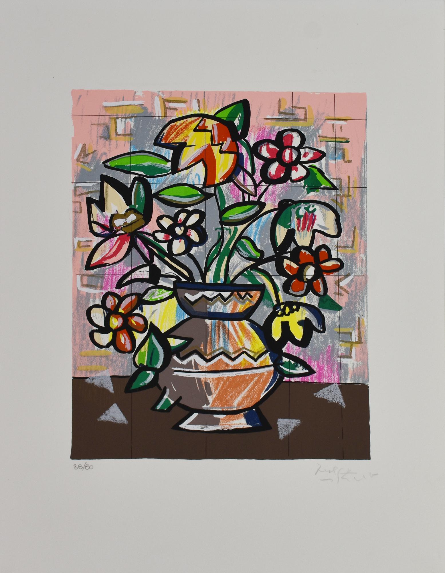 Ibrahim Kodra (1918 - 2006) VASO DI FIORI serigrafia, cm 50x35; es. 38/80...