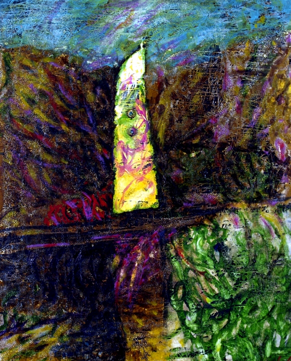 "Sul ramo" 1990 Olio su tela cm. H: 45.00 L: 55.00 Firmato in basso a destra, firma e titolo al retro. Autentica dell'autore su foto. Etichetta al retro della Galleria Cafiso (Mi).