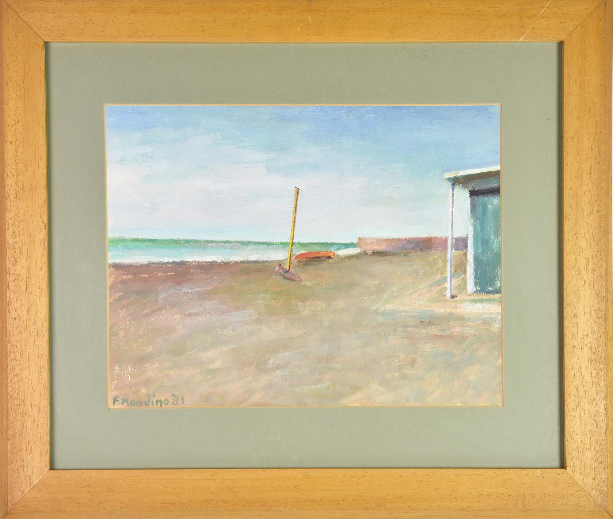 Filippo Mondino LIDO DI OSTIA, 1981 olio su carta, cm 30x40 firma e data...