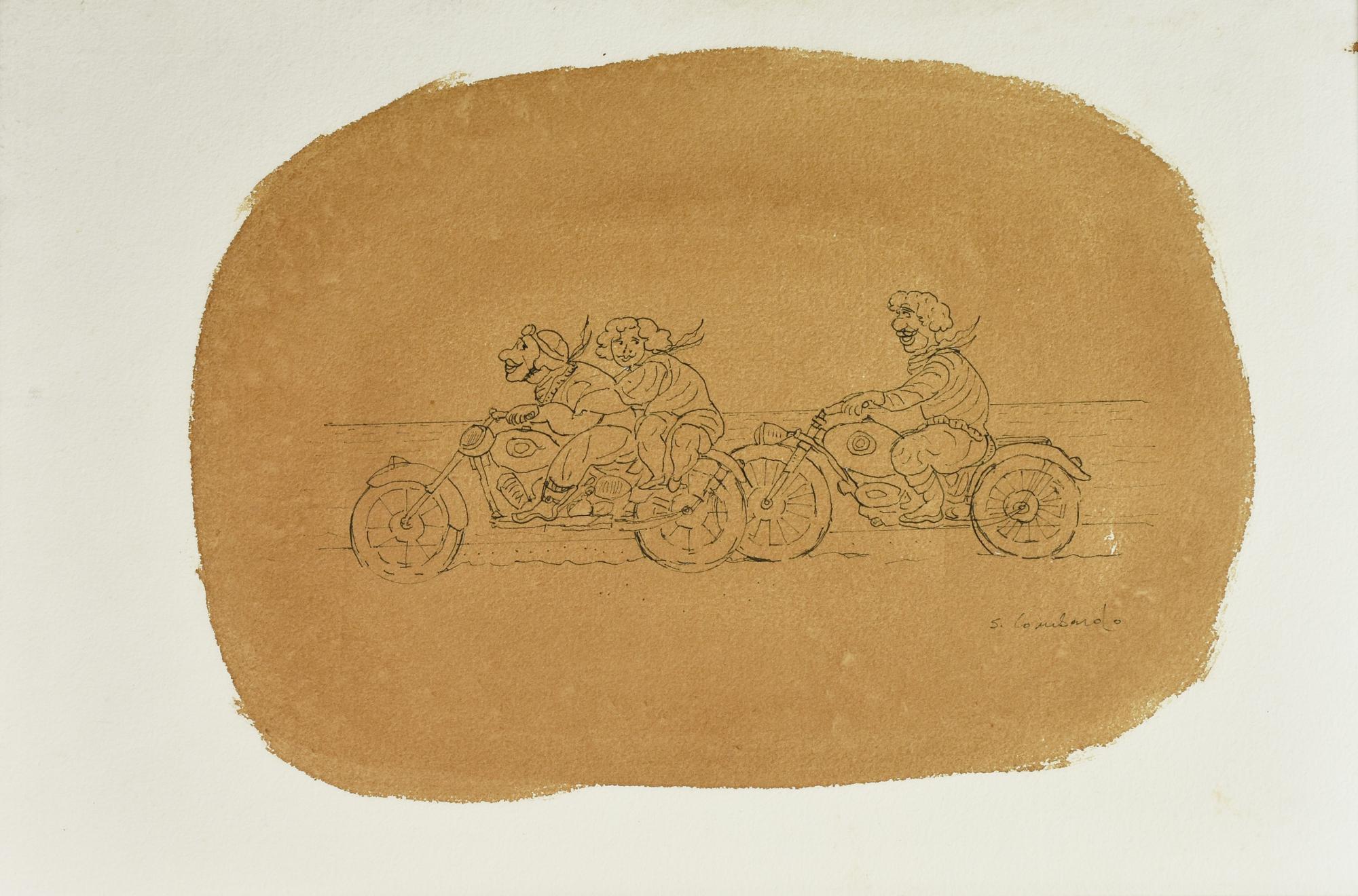 Lotto 45 | Salvo Lombardo MOTOCICLISTI tecnica mista su carta, cm 35x50 firma...