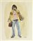 Leonardo Stroppa UOMO CON MANDOLINO acquerello su carta, cm 47x36 firma sul...