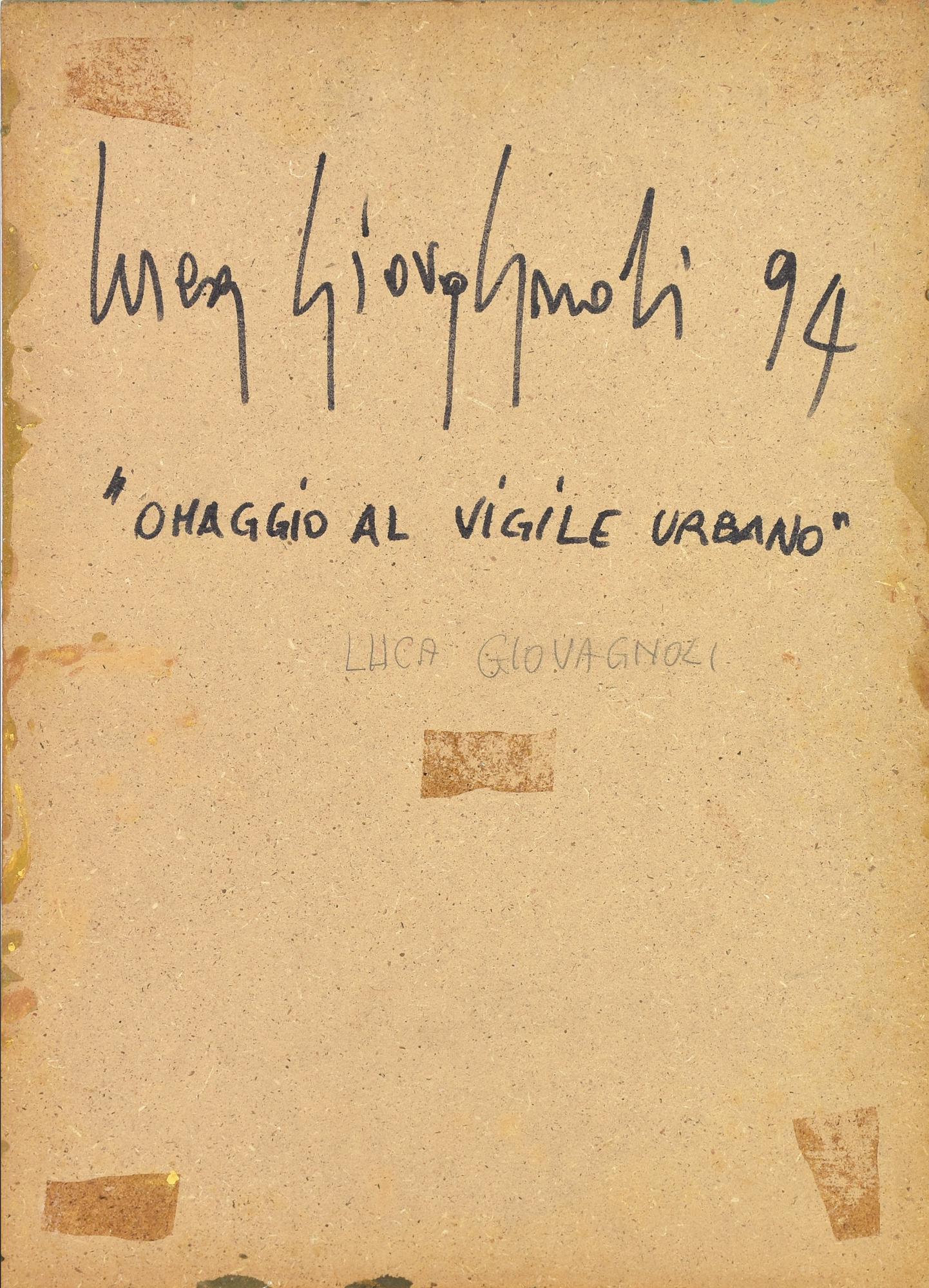 Luca Giovagnoli OMAGGIO AL VIGILE URBANO, 1994 tecnica mista su tavola, cm...