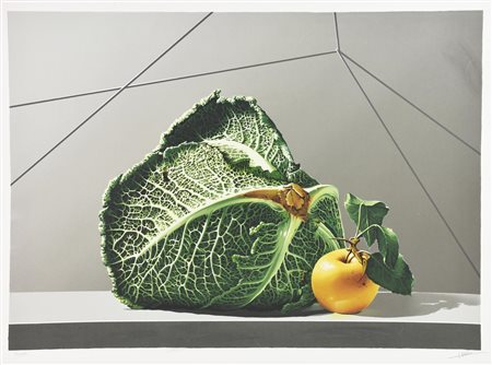 Gerico (Piero Geri) NATURA MORTA CON MELA E VERZA serigrafia, cm 65x83; es....