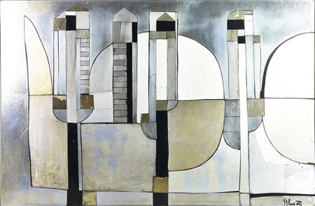 Milani SENZA TITOLO, 1972 tecnica mista su tavola, cm 65x100 firma e data sul...