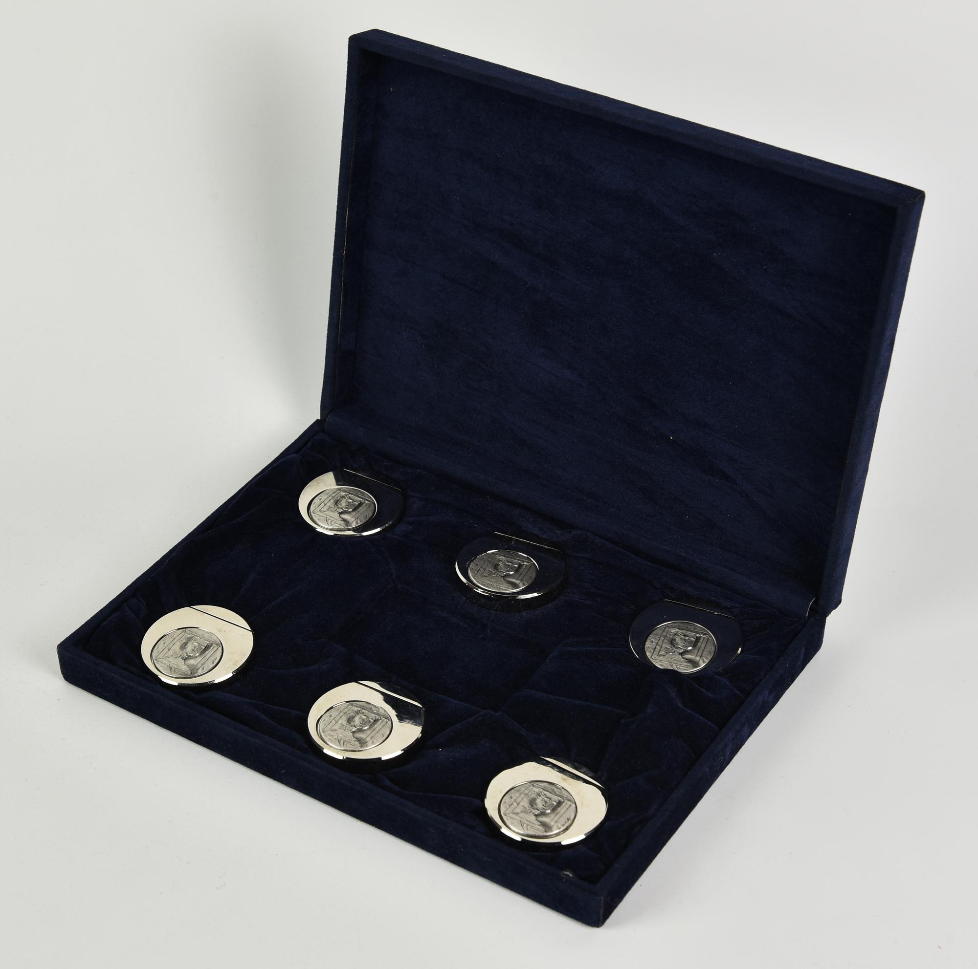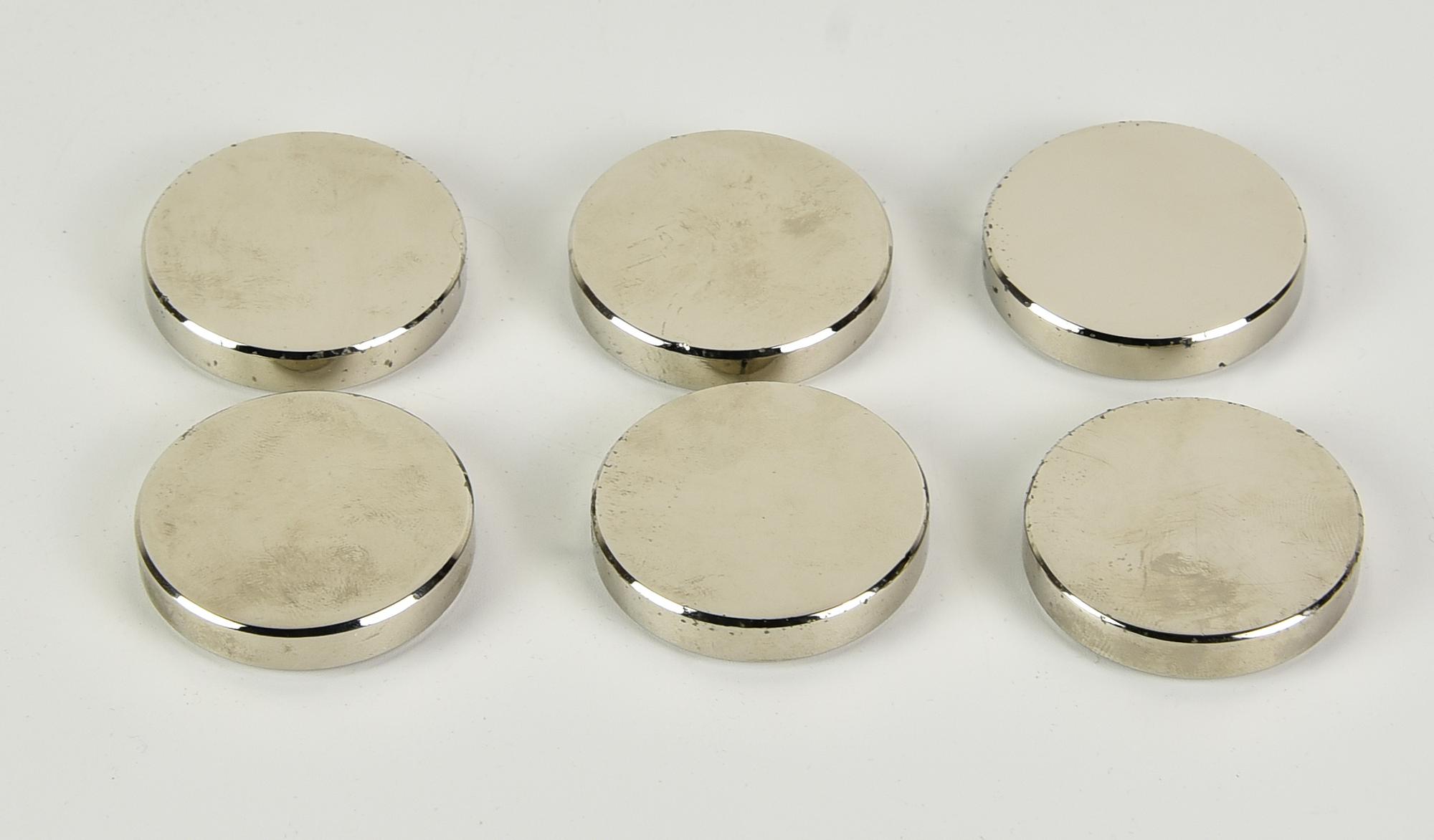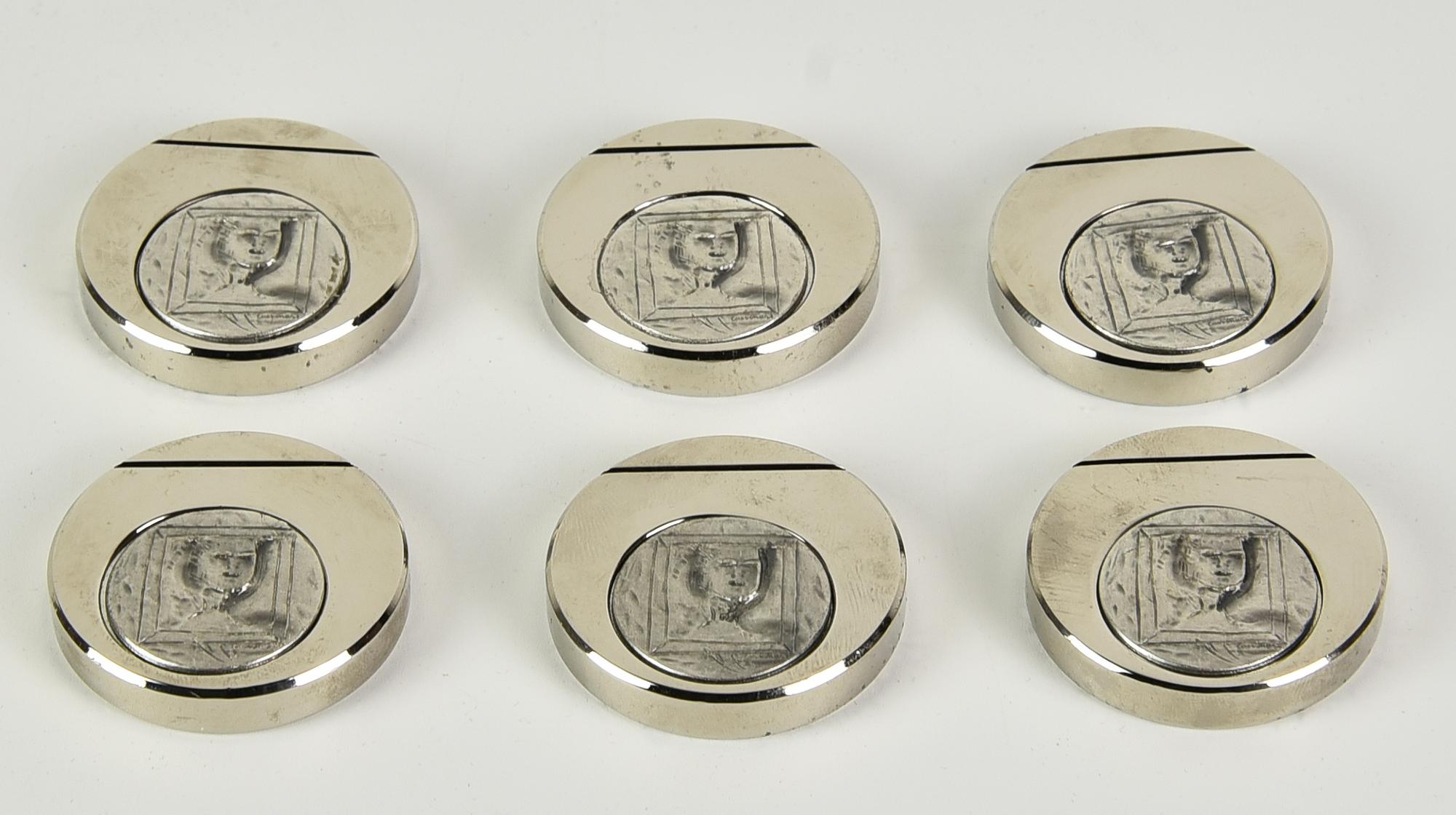 Bruno Cassinari SEGNAPOSTI metallo, diam. cm 4x0,5 ciascuno firma impressa (6)