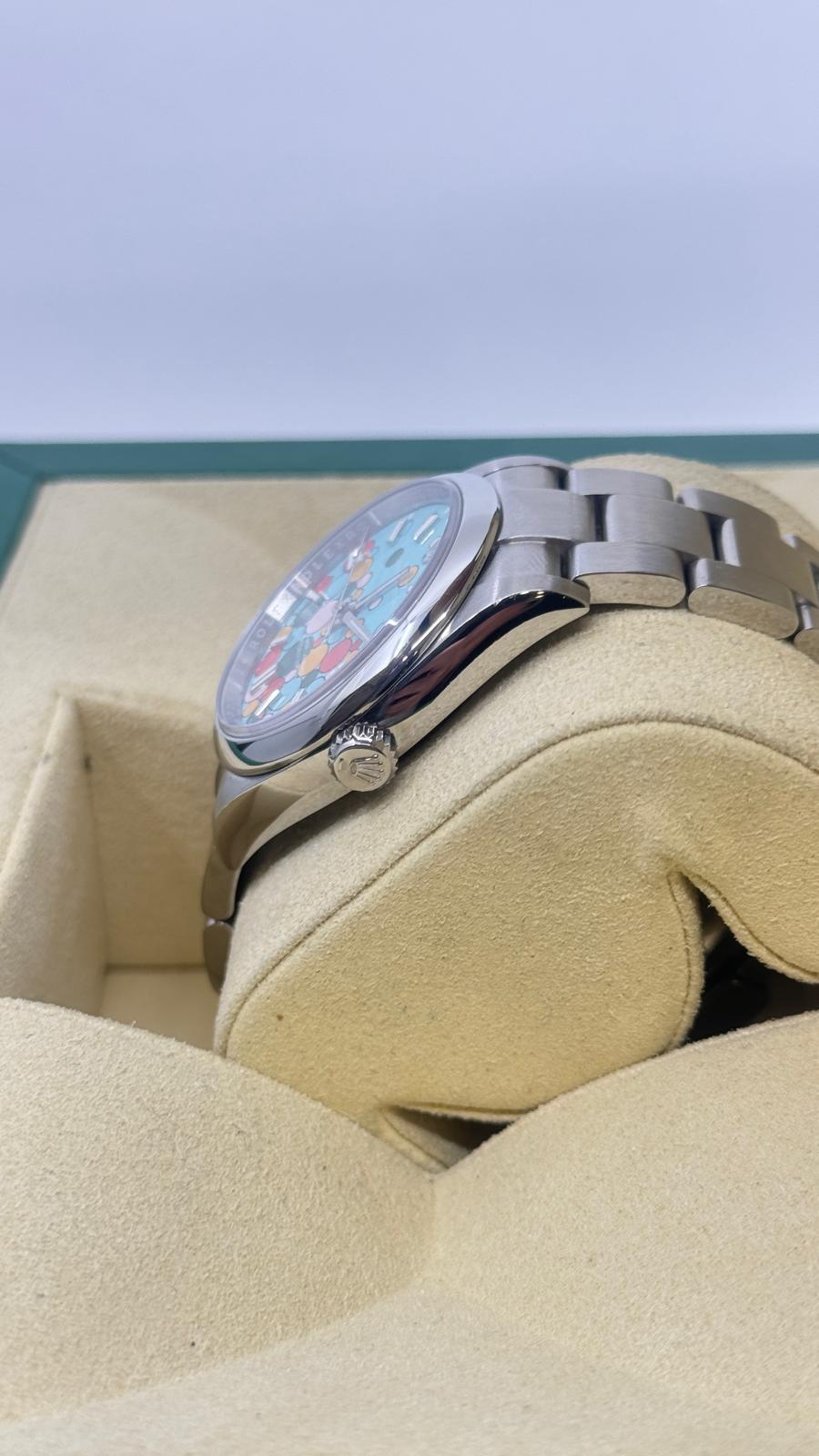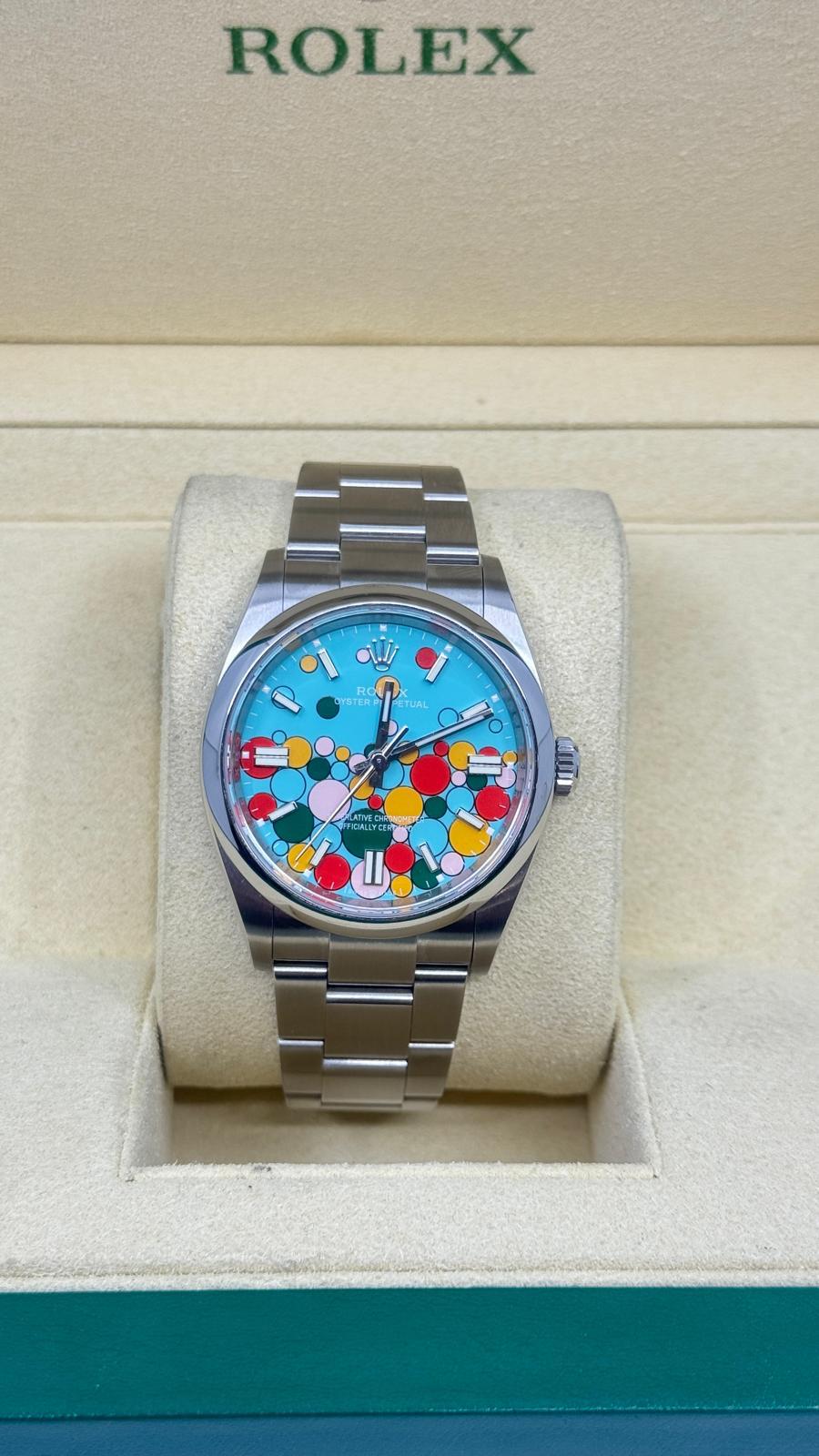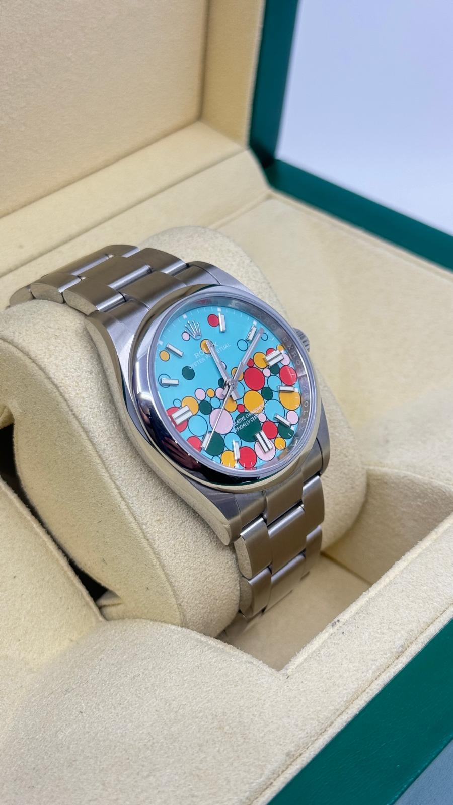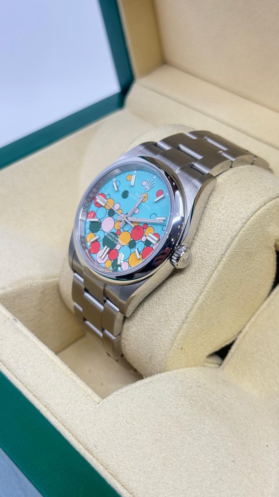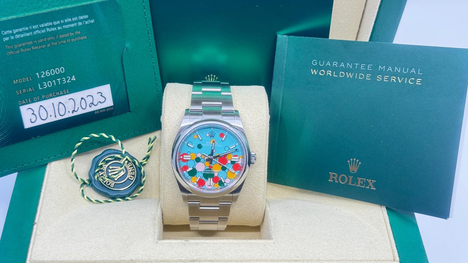 Modello (Orologio) Oyster Perpetual 36 Numero di referenza 126000 Carica Automatico Materiale della cassa Acciaio Materiale cinturino Acciaio Anno di produzione 2023 Corredo documenti originali Rolex, Calibro Carica Automatico Cassa Materiale della cassa Acciaio Diametro 36 mm Impermeabile 10 ATM Materiale lunetta Acciaio Vetro Vetro zaffiro Quadrante silver originale, montato quadrante bubble aftermarket Numeri sul quadrante Senza numeri Cinturino Materiale cinturino Acciaio Colore cinturino Acciaio Chiusura Déployante Materiale chiusura Acciaio