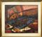 LUIGI PASSERI, "Natura morta in rosso", 1969, olio su tela, dim 50x60 cm. Al fronte: firma e anno in basso a destra. Al verso: firma, titolo, anno, tecnica, dimensioni ed etichetta Galleria Accademia di Torino con informazioni e loro timbro in basso a destra. Opera con cornice.