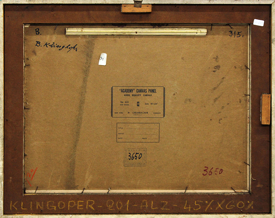 B. KLINGOPER, "Nudo di donna con cigno", anni '70, olio su tela intavolata, dim 45x60 cm. Al fronte: firma in basso a destra. Al verso: in alto a sinistra firma, in basso timbro della Galleria Accademia di Torino. Opera con cornice.
