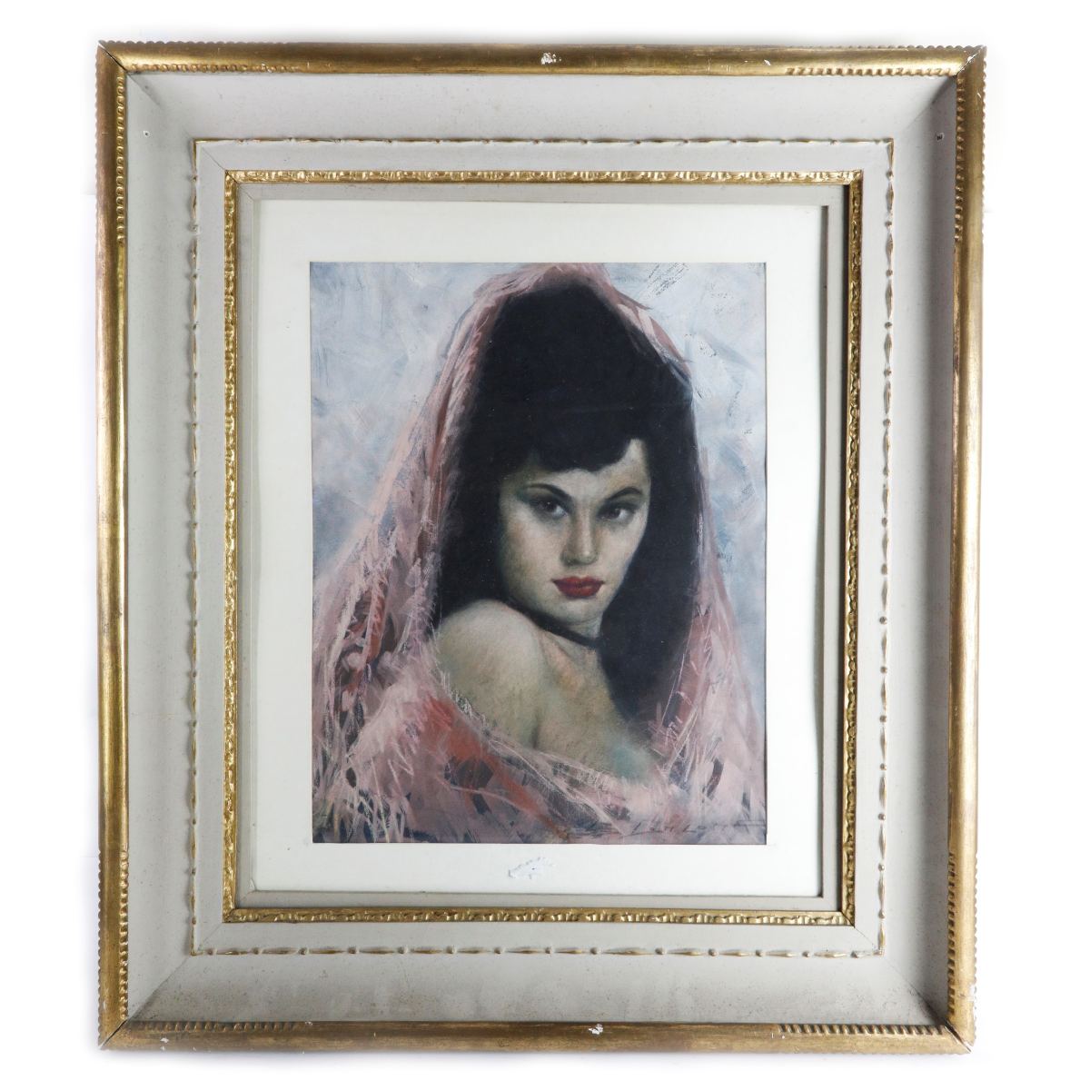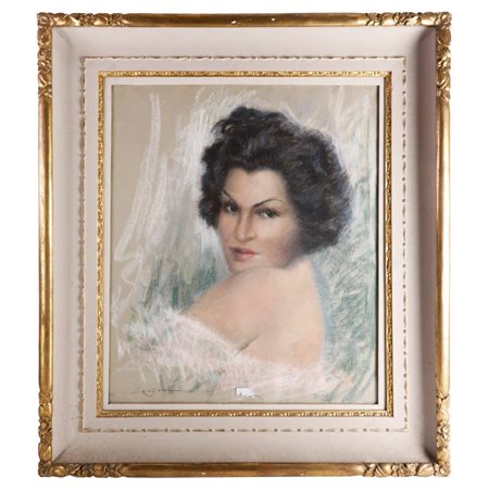 Coppia di ritratti femminili metà XX secolo pastello su carta 58 x 48 cm 50 x 39 cm