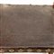 seduta e alzata a cartella in pelle lavorata, di forma quadrangolare unite alla base da fasce. Finiture con pennacchi e borchie in ottone,