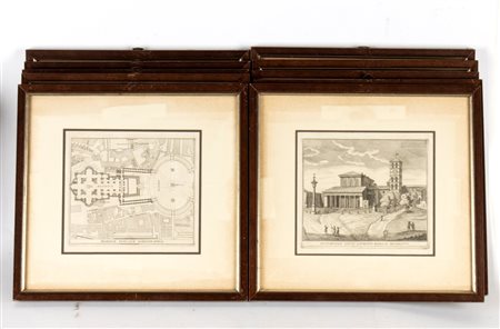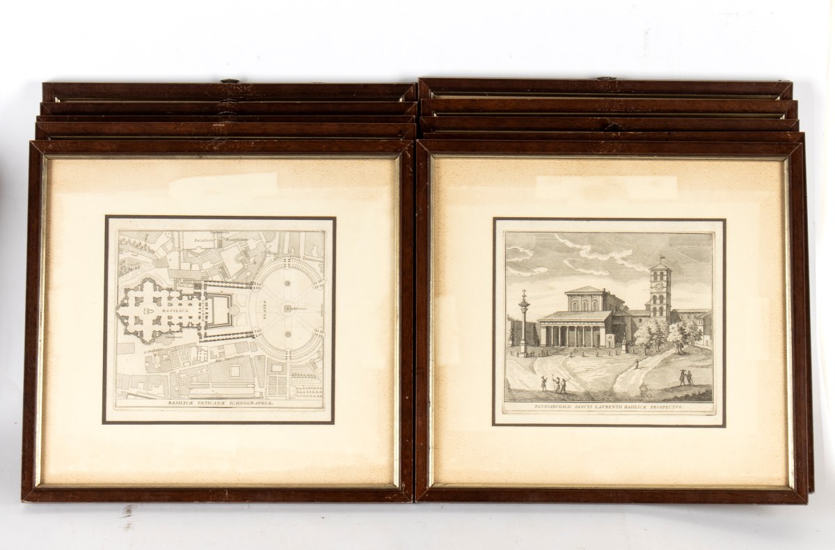 Lotto di 10 incisioni raffiguranti chiese e basiliche di Roma