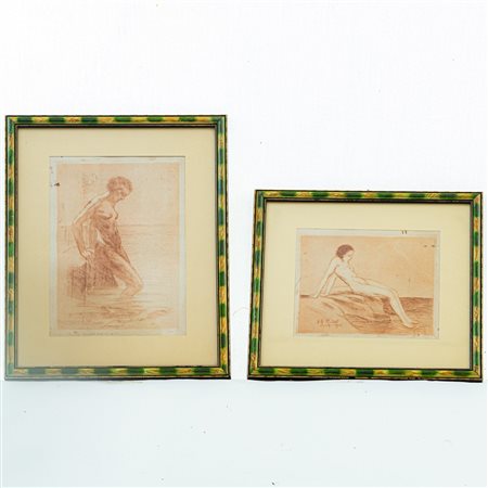 Lotto di due nudi femminili, multipli su carta prima metà XX secolo