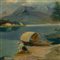Veduta di montagne con lago Prima metà XX secolo dipinto ad olio su tela 40 x 50 cm