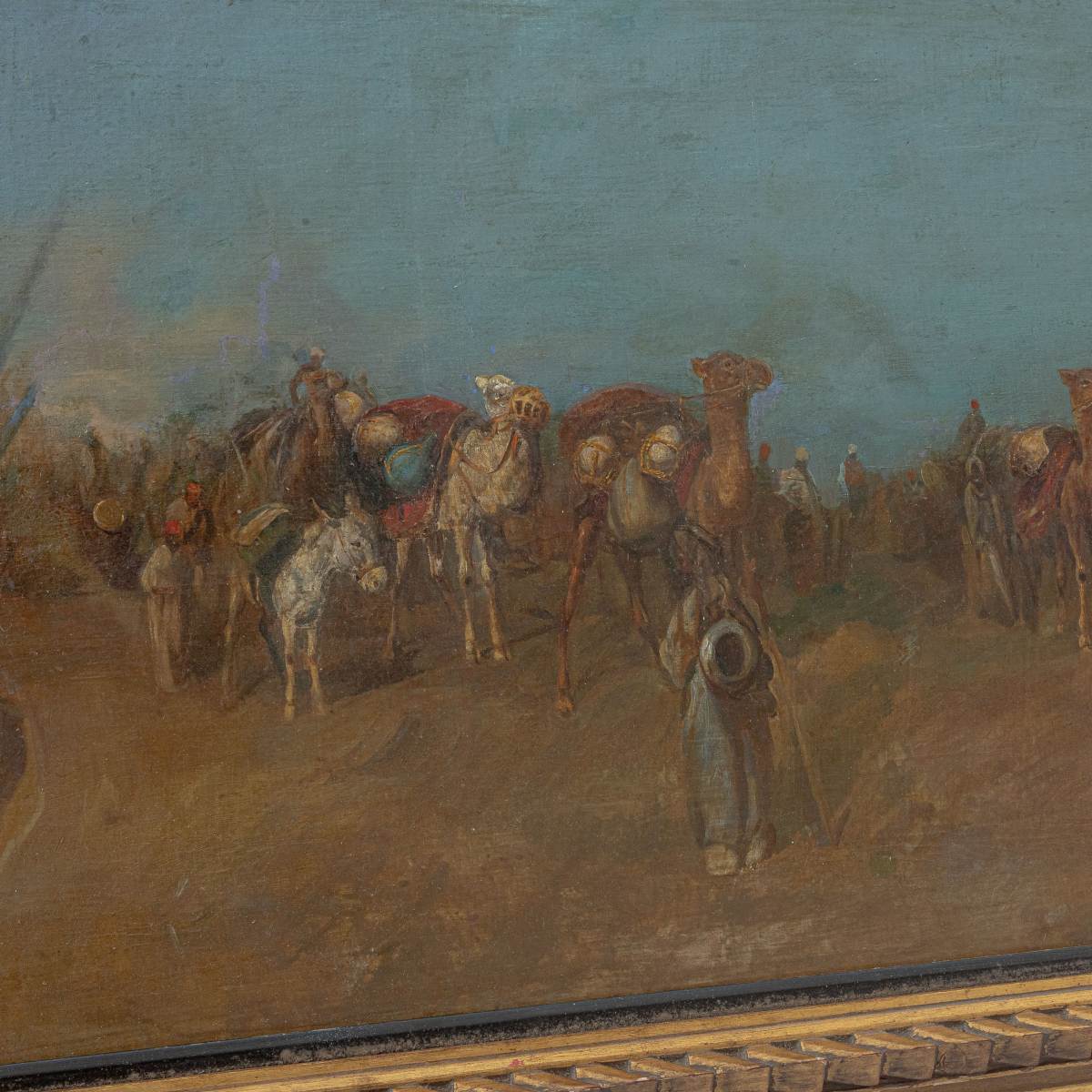 Carovana al riposo prima metà XX secolo dipinto ad olio su tela 50 x 100 cm