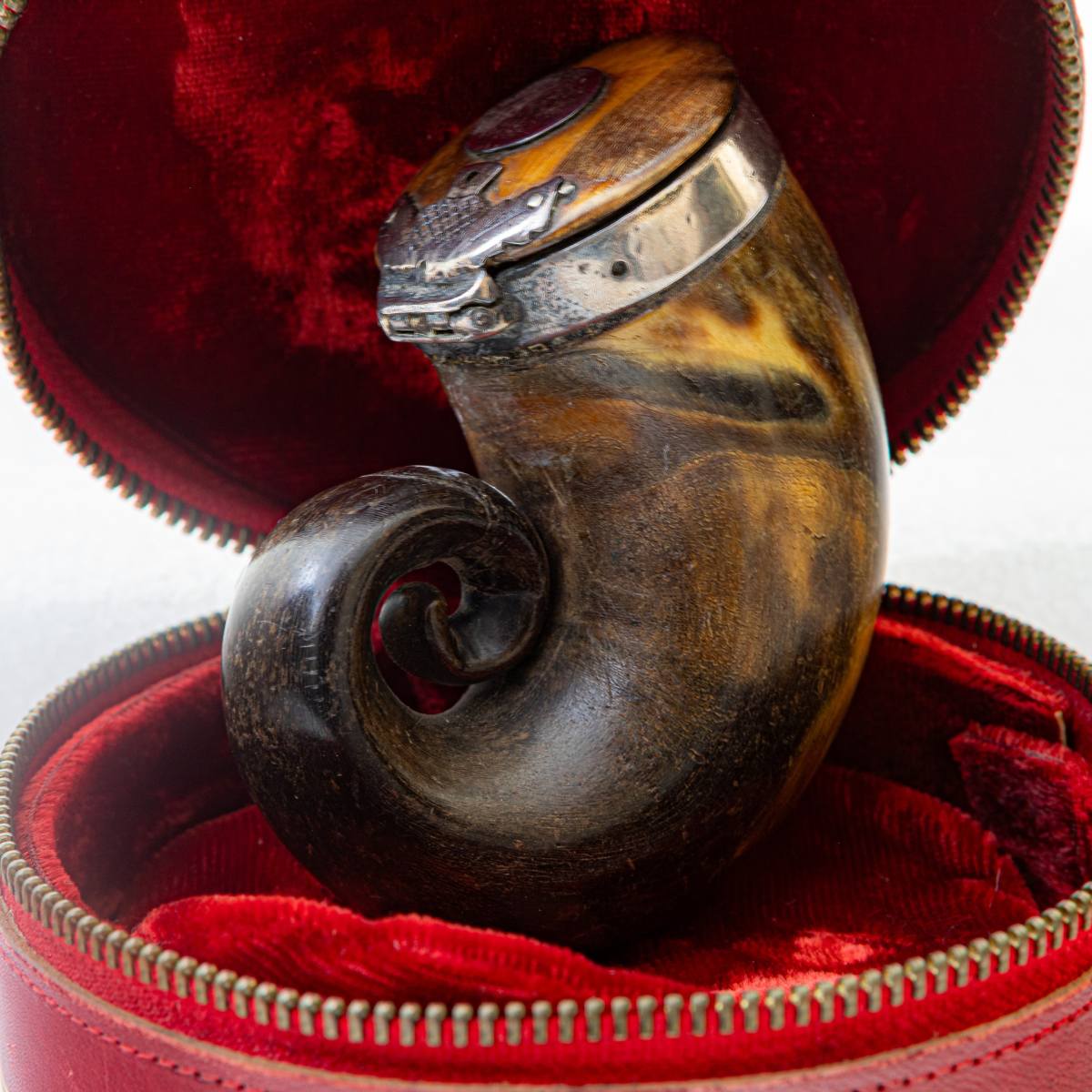 Porta polvere in corno con finiture in argento XIX secolo 7 x 6,5 x 3 cm