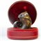 7 x 6,5 x 3 cm entro astuccio in pelle rossa con finiture in oro zecchino.