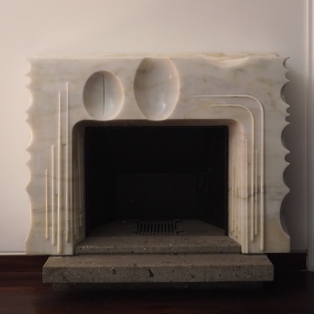 Camino da parete in marmo bianco metà XX secolo 101 x 113 x 30 cm profondità interna 42 cm