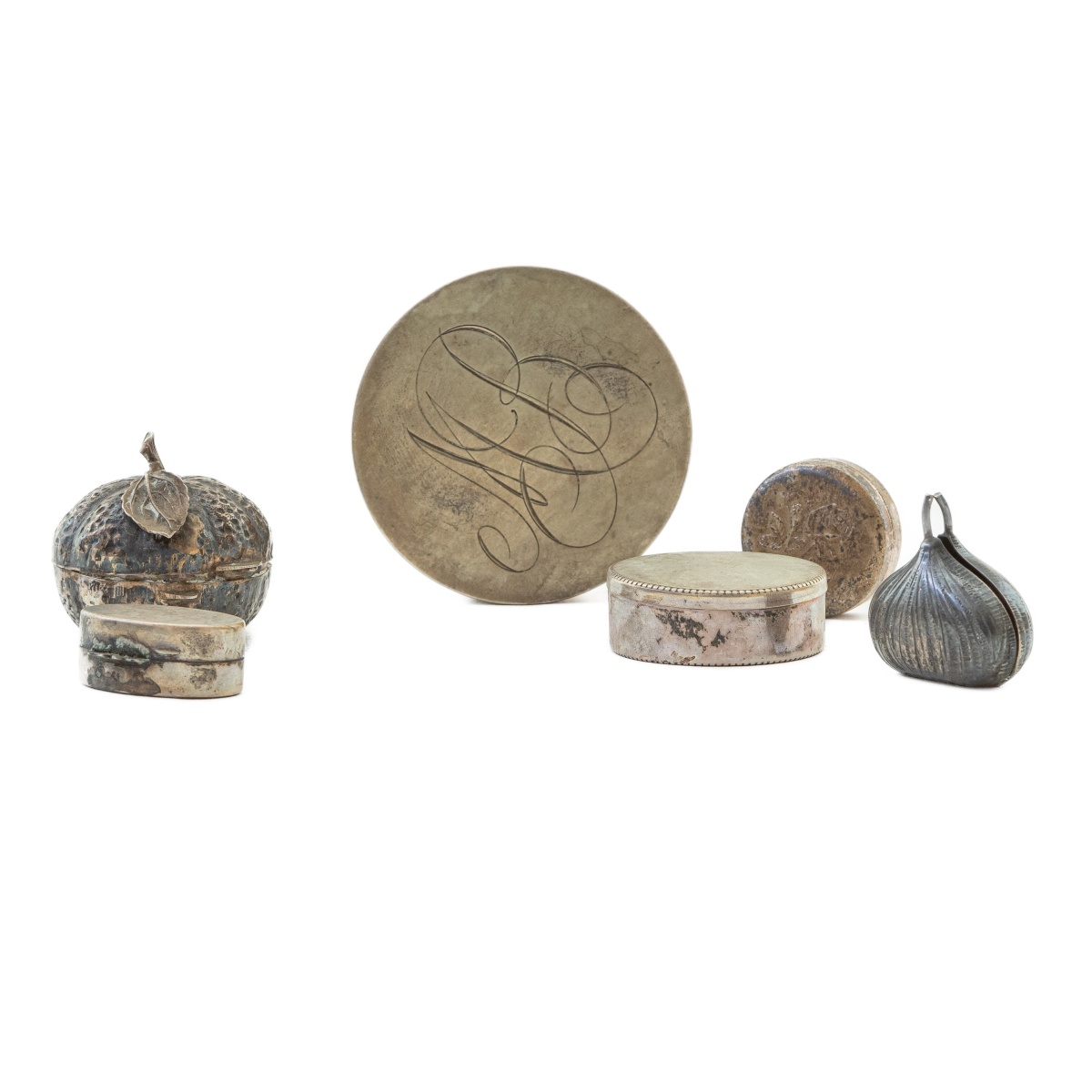 Lotto di sei scatoline in argento 800/1000 metà XX secolo