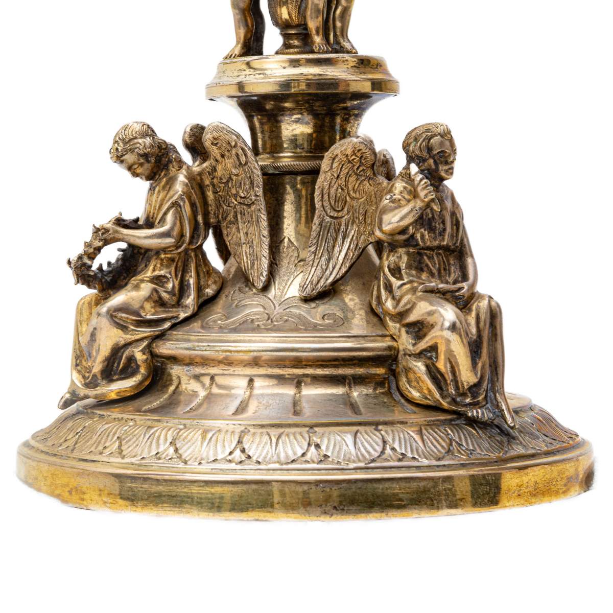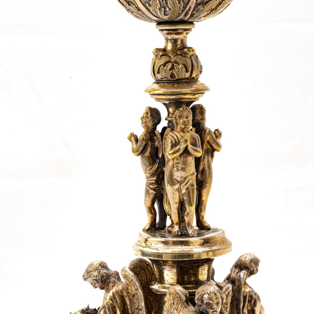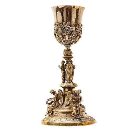 30 x 14 cm di forma Barocca, con angeli alla base e lungo il corpo ed elementi floreali scolpiti ed incisi dal bicchiere alla base