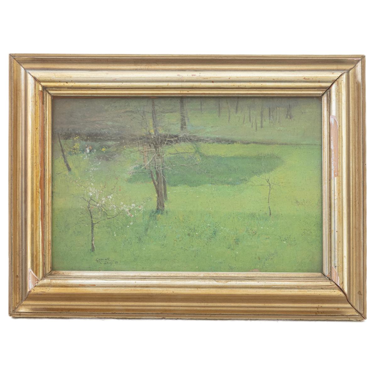 dipinto olio su cartone 26 x 39 cm in cornice, firmato e datato.