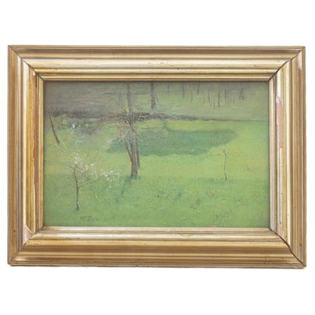 GIUSEPPE CASCIARO (Ortelle, 1863 - Napoli, 1941) Alberi nel verde 1939dipinto olio su cartone 26 x 39 cm