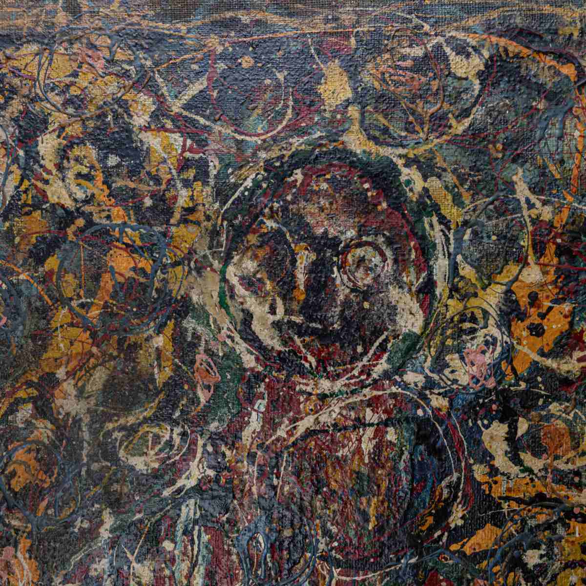 tecnica mista su tela 100 x 80 cm con etichetta al retro, firmato e datato entro cornice a giorno.