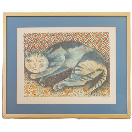 FRANCO GENTILINI (Faenza, 1909 - Roma, 1981) Gatto, multiplo su carta 43 x 53 cm