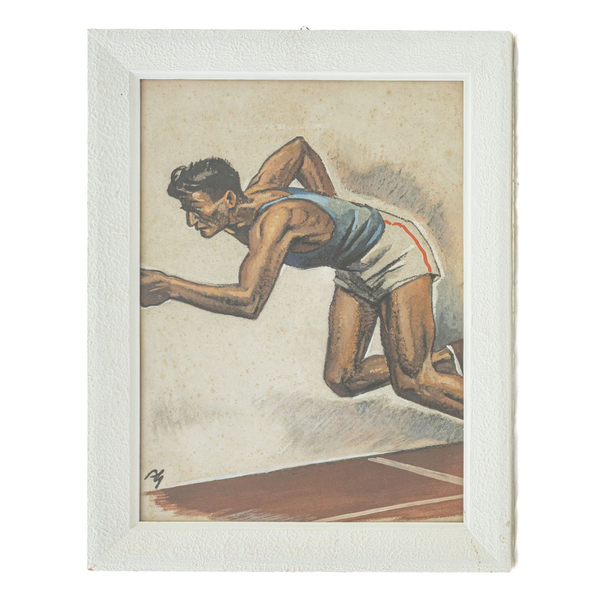 ANGELO GUAZZONI (Milano, 1905 - 1998) “Il centometrista” tempera su carta 40 x 29,5 cm