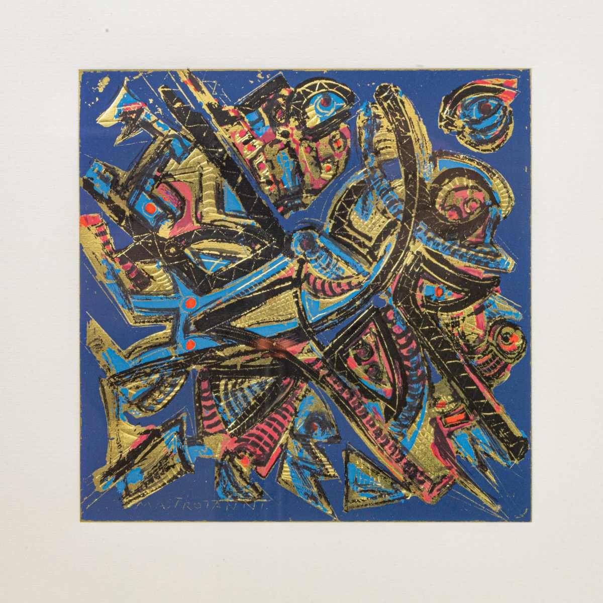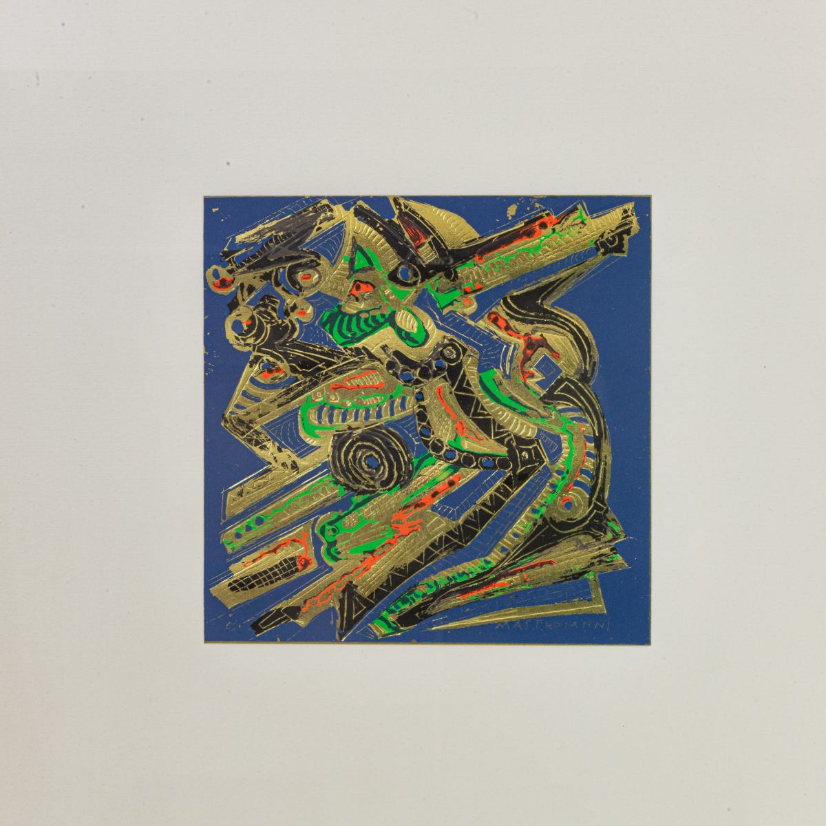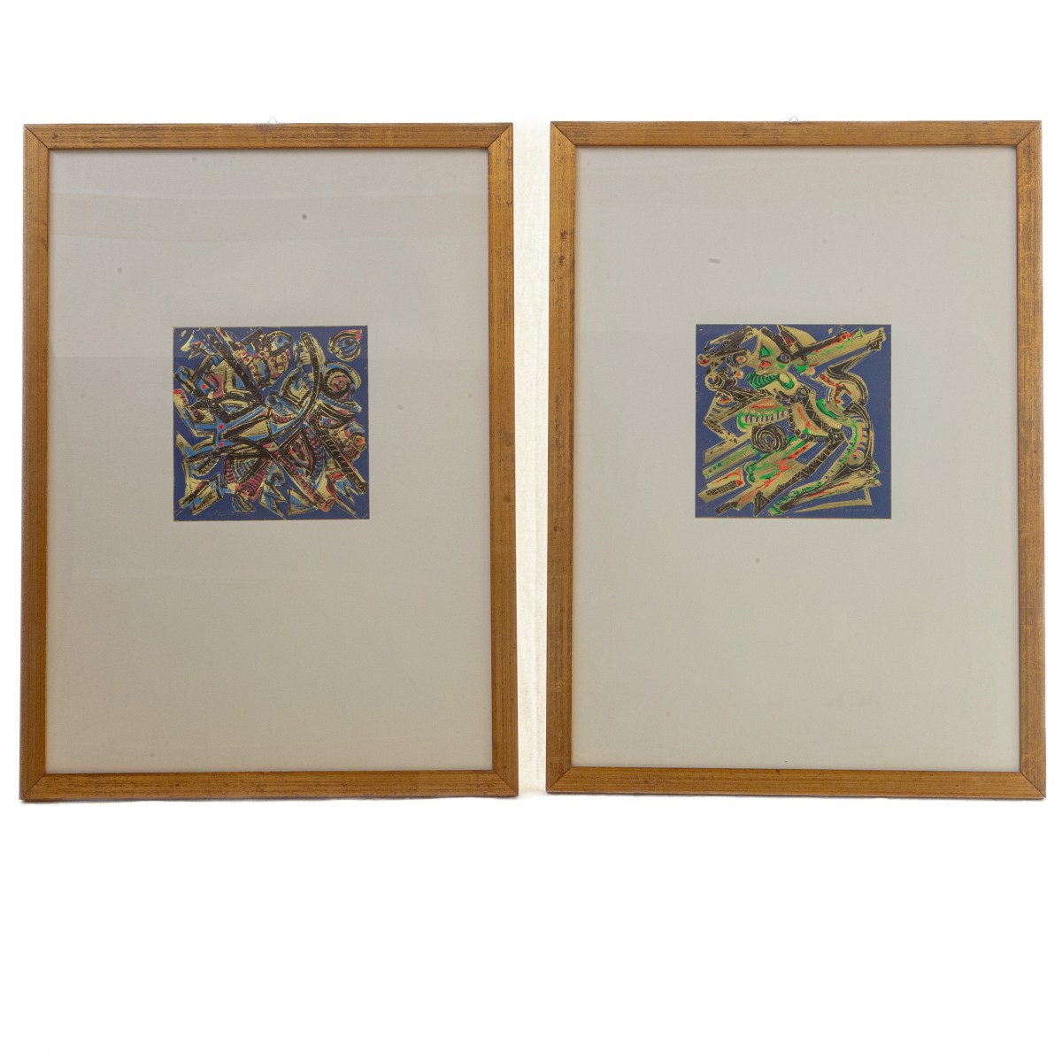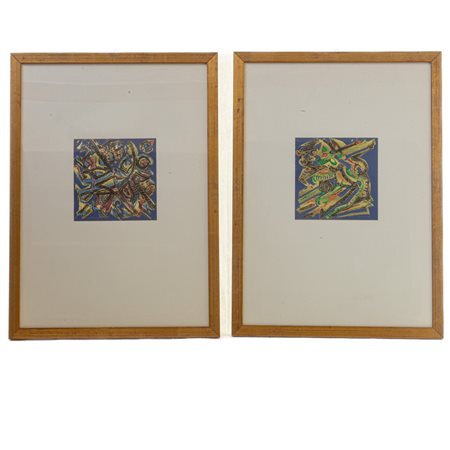UMBERTO MASTROIANNI (Fontana Liri, 1910 - Marino, 1998) Coppia di lastre su carta a soggetti geometrici concettuali 16 x 16 cm