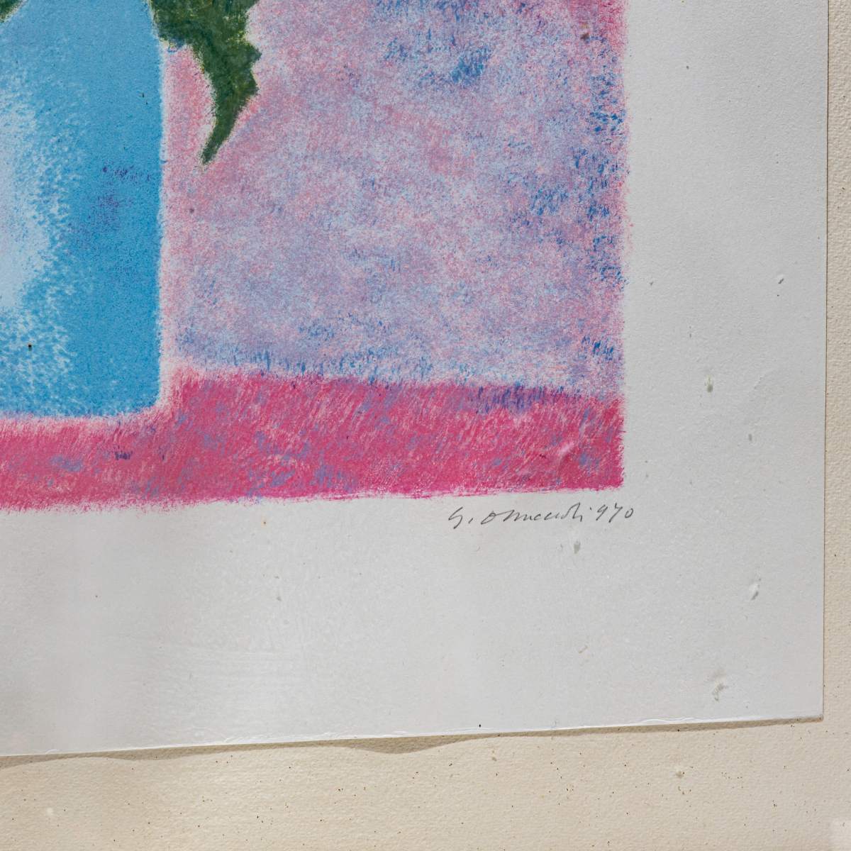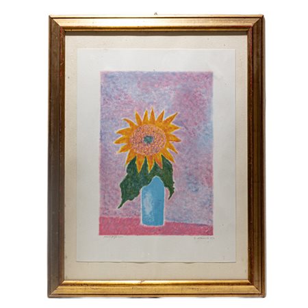 GIOVANNI OMICCIOLI (Roma, 1901 - 1975) Vaso con girasole, multiplo su carta 1970 64 x 47 cm